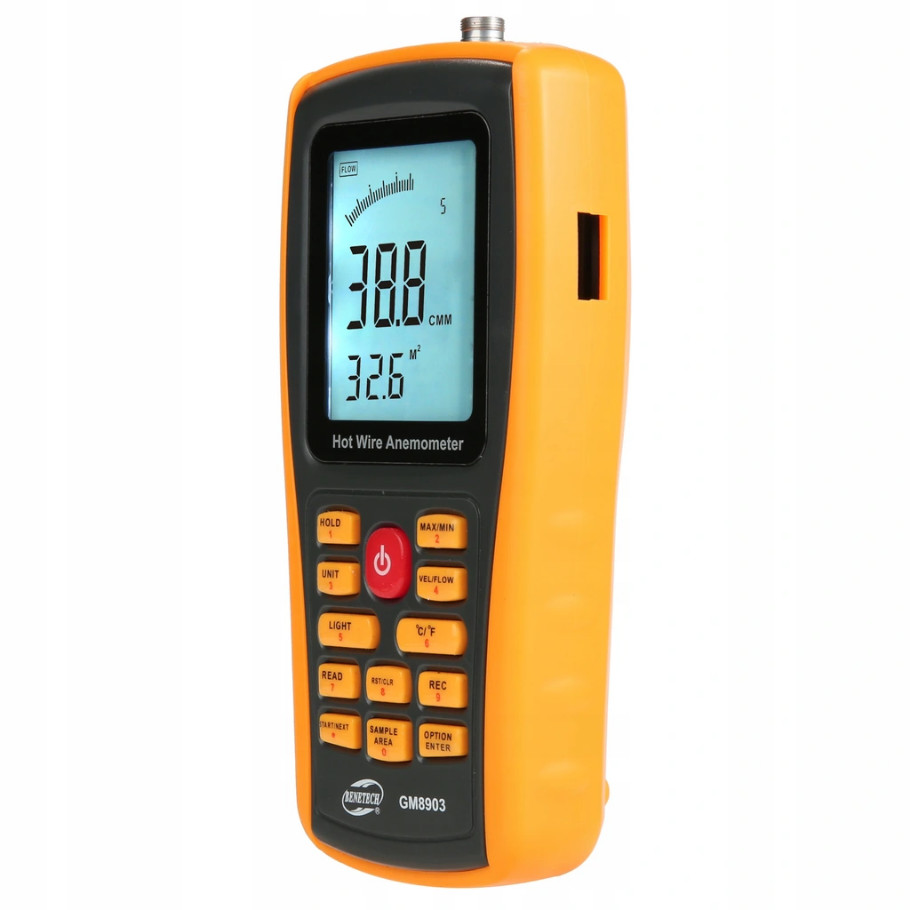Анемометр Benetech - це точний прилад для вимірювання швидкості вітру, температури та потоку повітря з можливістю підключення до комп'ютера через порт USB. b> p>