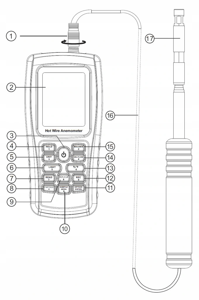 ТЕРМОАНЕМОМЕТР АНЕМОМЕТР З ГАРЯЧИМ ДРОТОМ З ТЕРМОПАРОЮ K