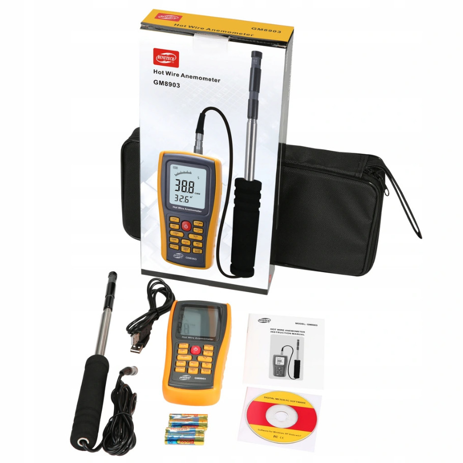 Анемометр Benetech - це точний прилад для вимірювання швидкості вітру, температури та потоку повітря з можливістю підключення до комп'ютера через порт USB. b> p>