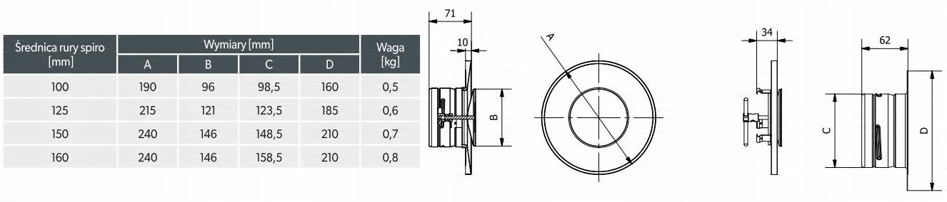- Виконання: кругле, припливно-витяжне повітря