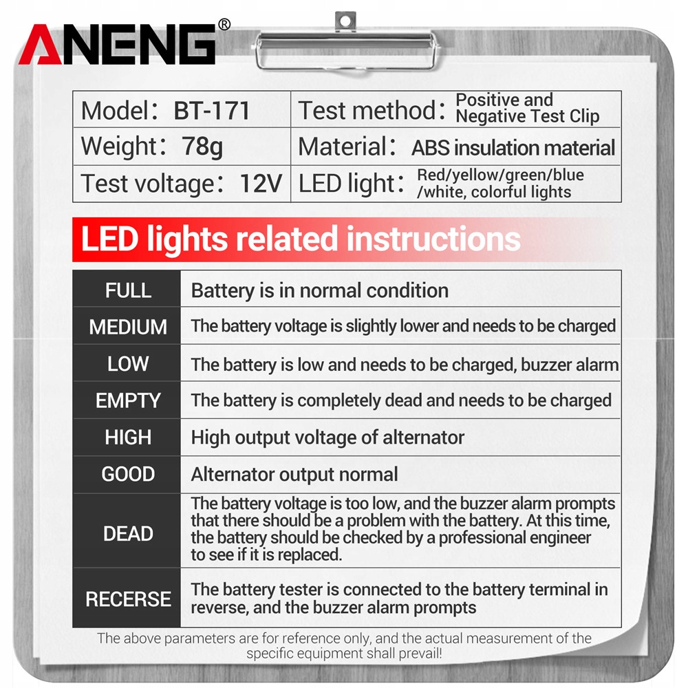 Тестер автомобільного акумулятора 12 В ANENG BT-171