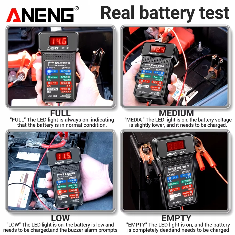 ANENG BT-171 Тестер батареї 12 В РК-дисплей Тестування батареї