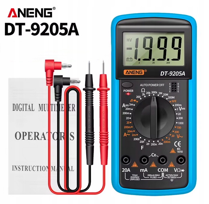 ANENG DT9205A – цифровий мультиметр з транзистором і тестером опору