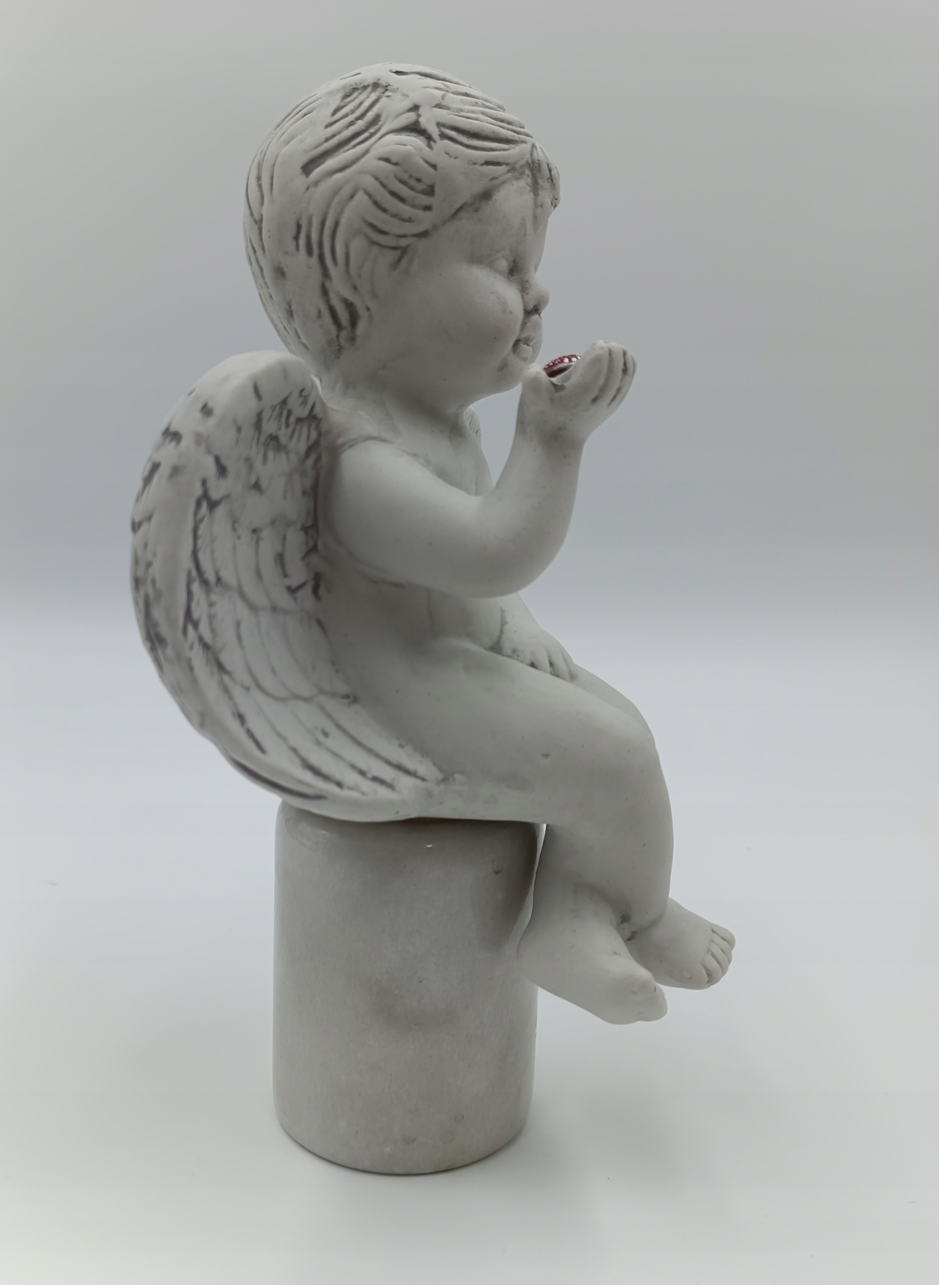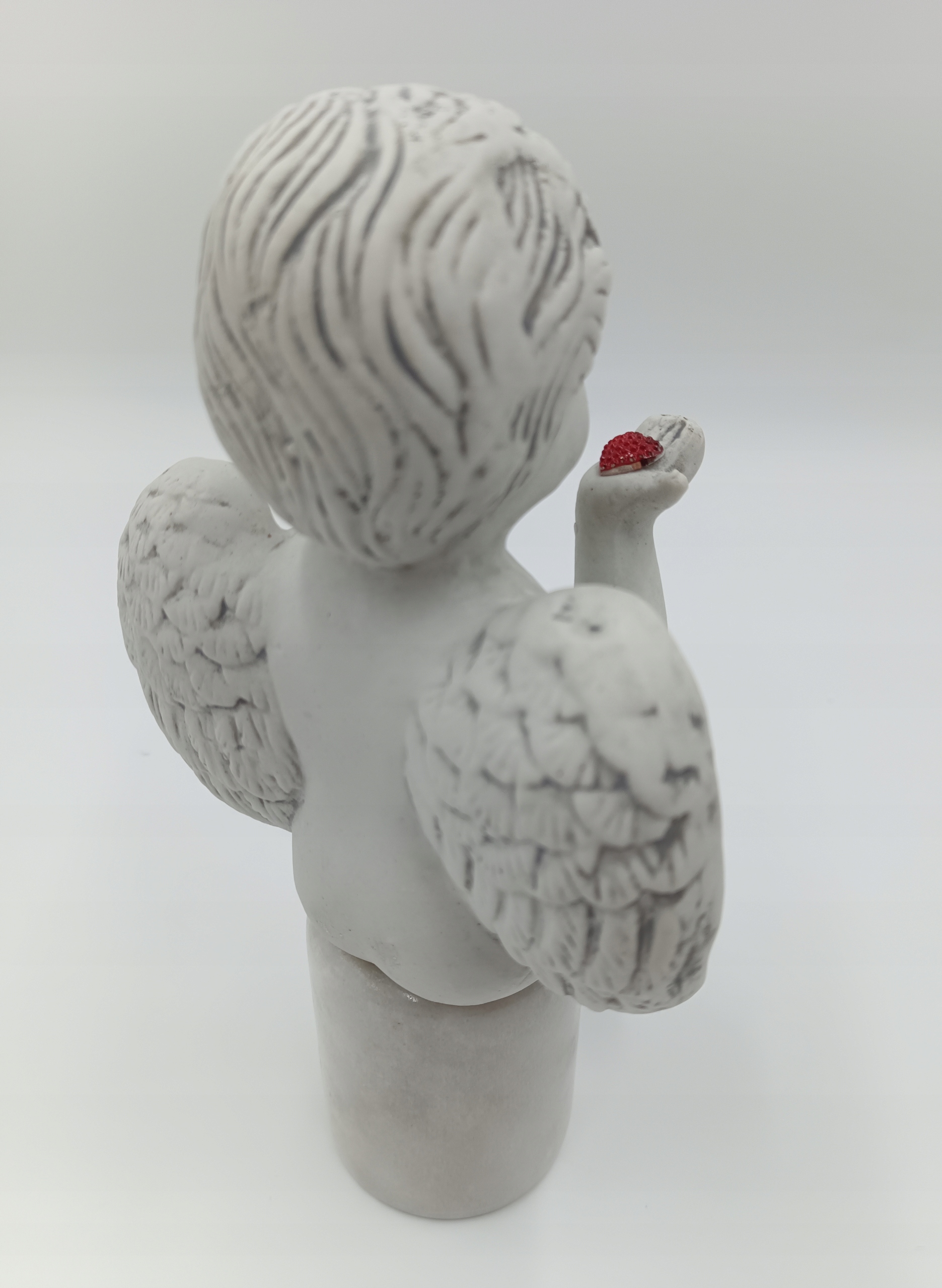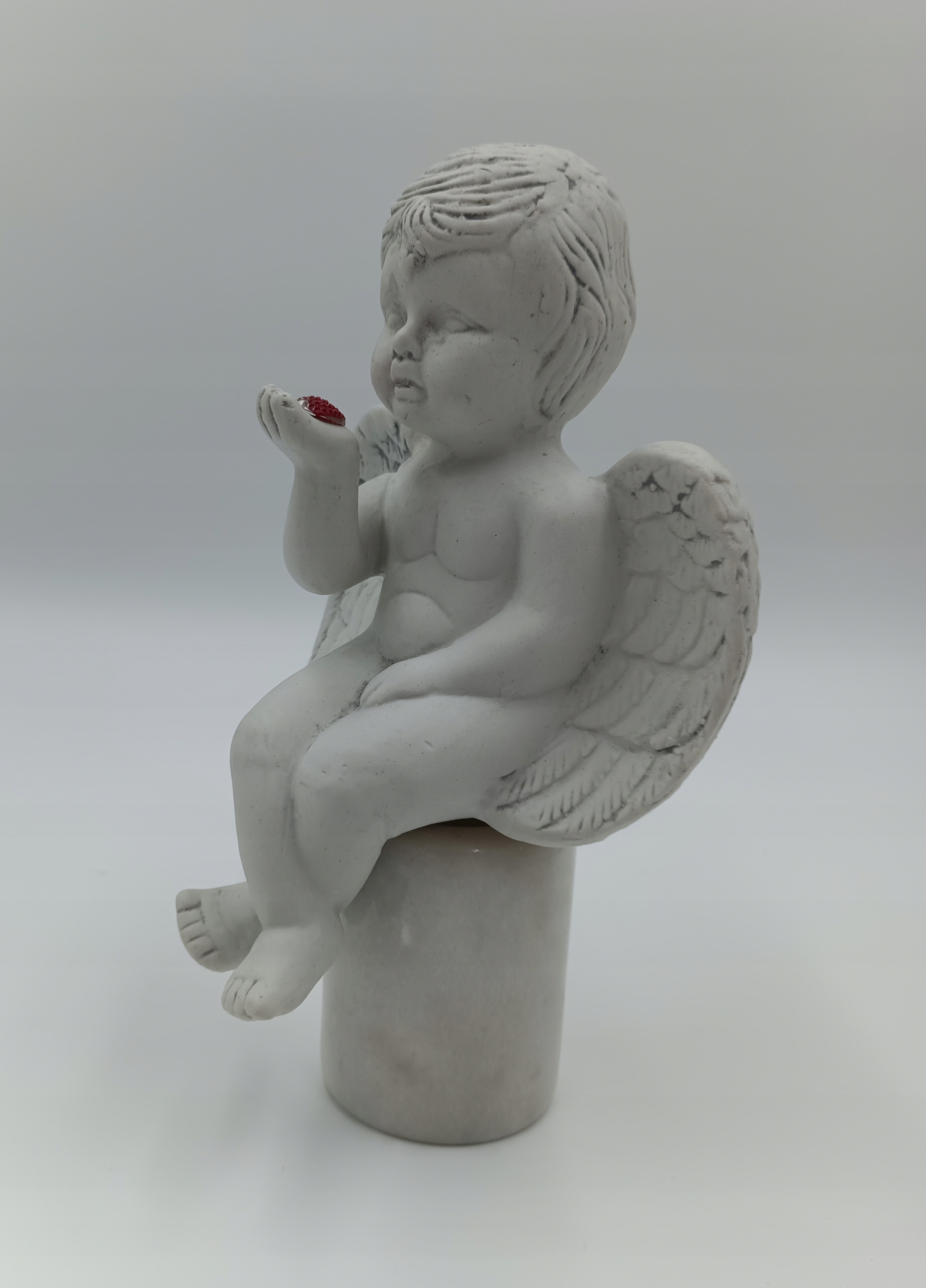 Фігура, зроблена з кераміки (всередині порожній) - дуже приємно. Ангел тримає на руці червоне серце. Ідеально підходить для подарунка - фотографії відображають реальність, яку я рекомендую!