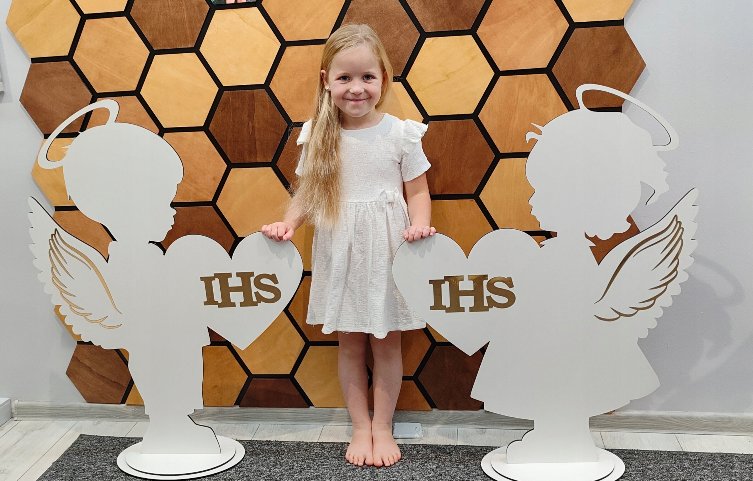 Красива дівчинка -ангел із серцем, яка стане великою прикрасою вівтаря чи кімнати під час церемонії Святого Причастя.