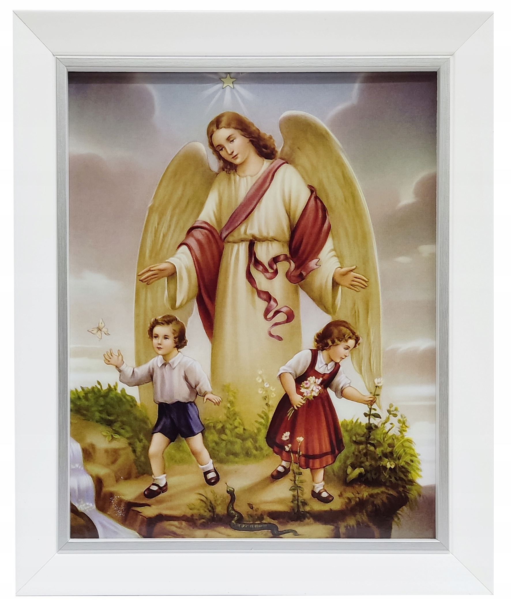 КАРТИНКА АНГЕЛА-ХОРОНЕЦЯ В БІЛІЙ РАМЦІ ЗІ СРІБНОЮ СМУЖКОЮ