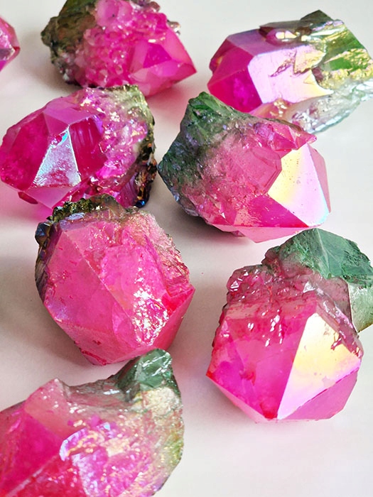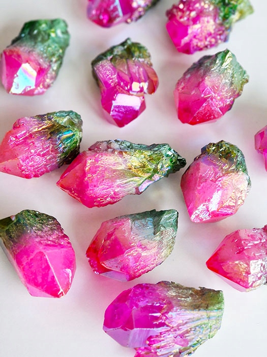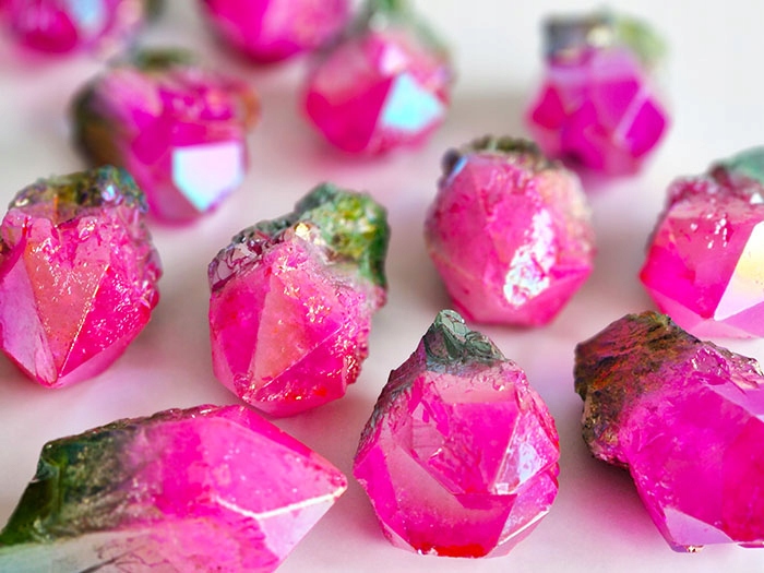Це натуральний гірський кришталь, покритий платиною та сріблом, іноді золотом, що створює ефект переливчастої веселки.