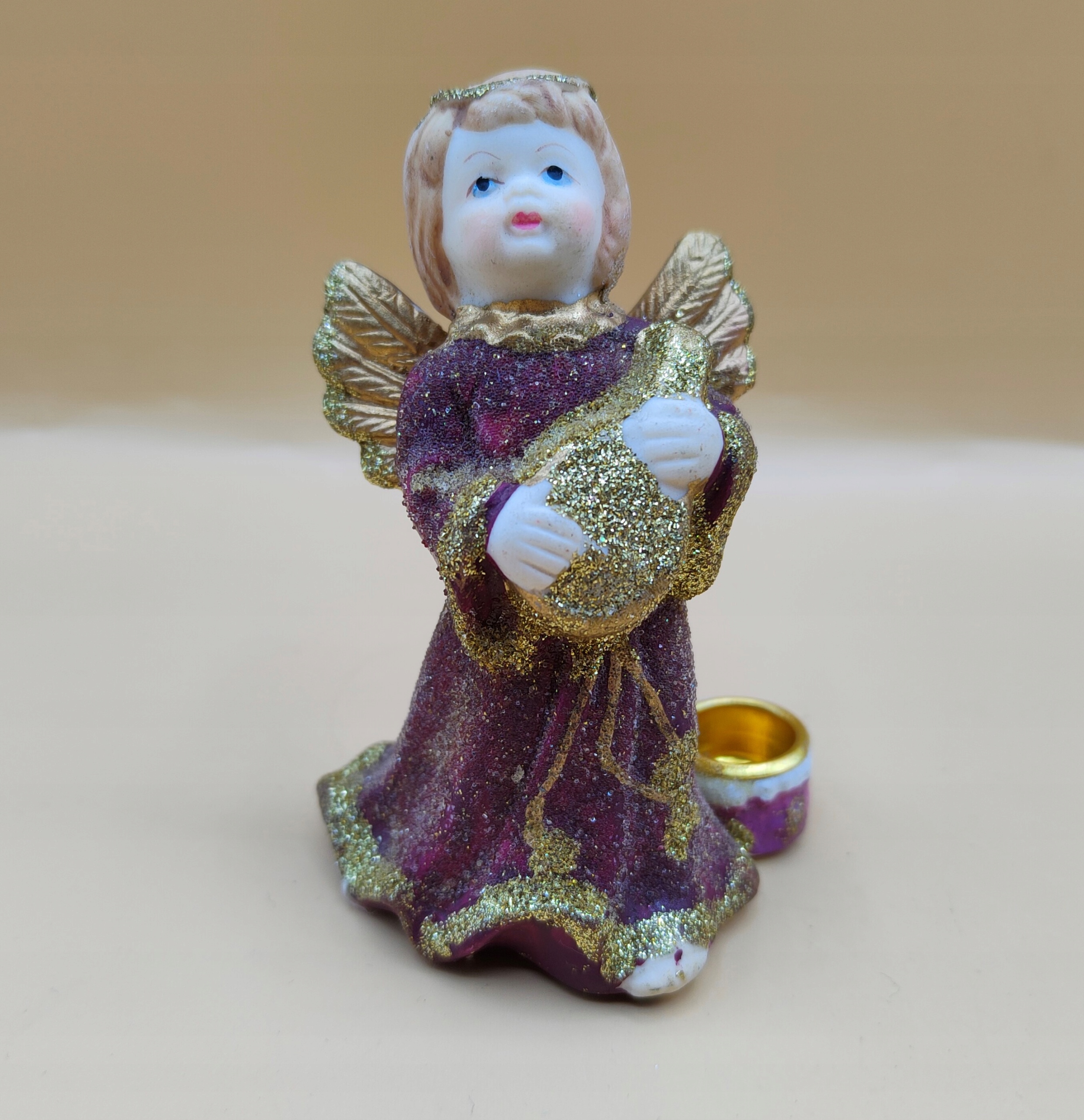 вінтаж, ангел, кольорові прикраси, гра на гітарі, свічник.
