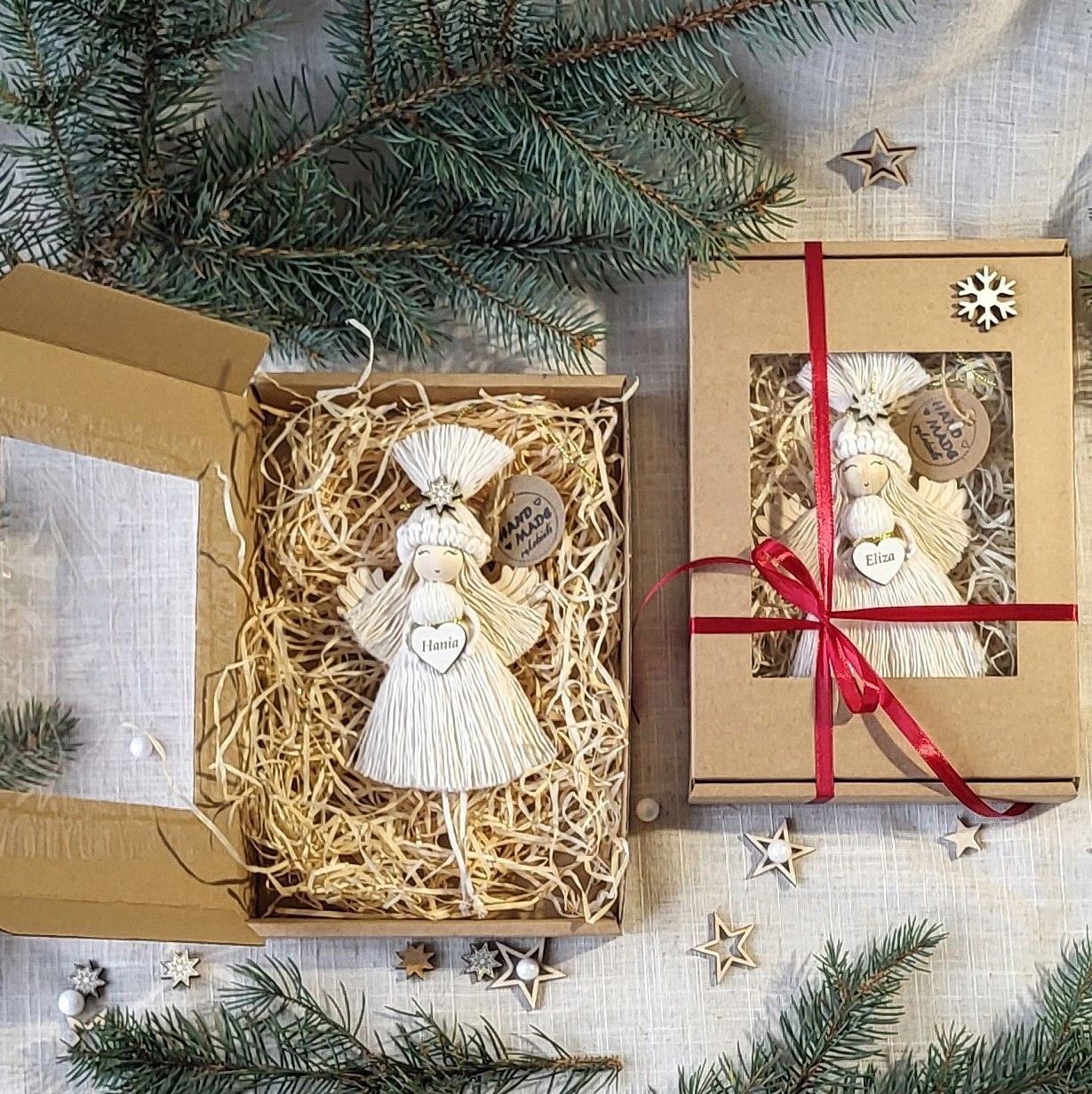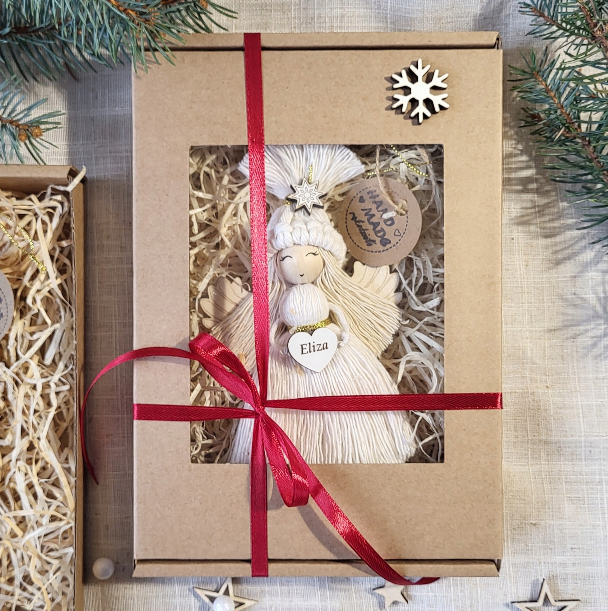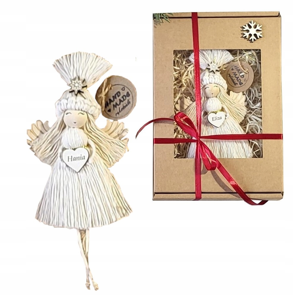 ANIOŁEK MAKRAMA W CZAPCE ZAWIESZKA W PUDEŁKU OZDOBA NA CHOINKĘ