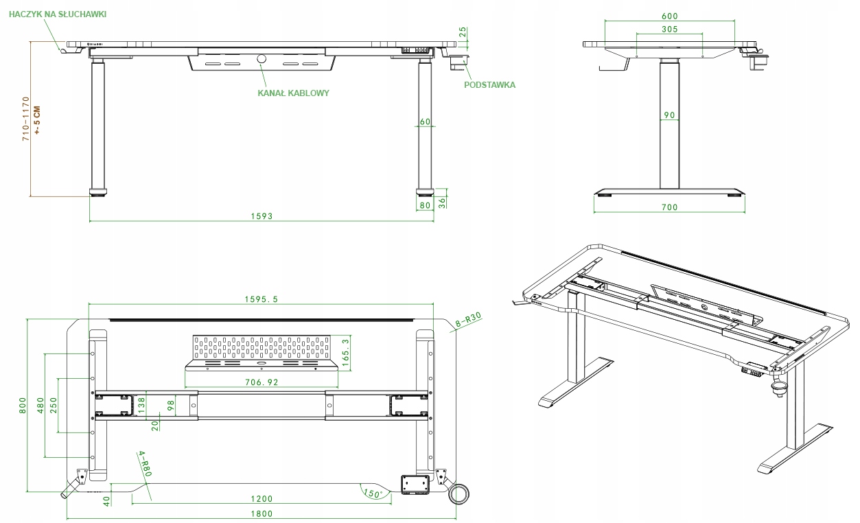 Діапазон висоти 72-117 см робить стіл ідеальним для роботи, навчання та гри , незалежно від кращої позиції.