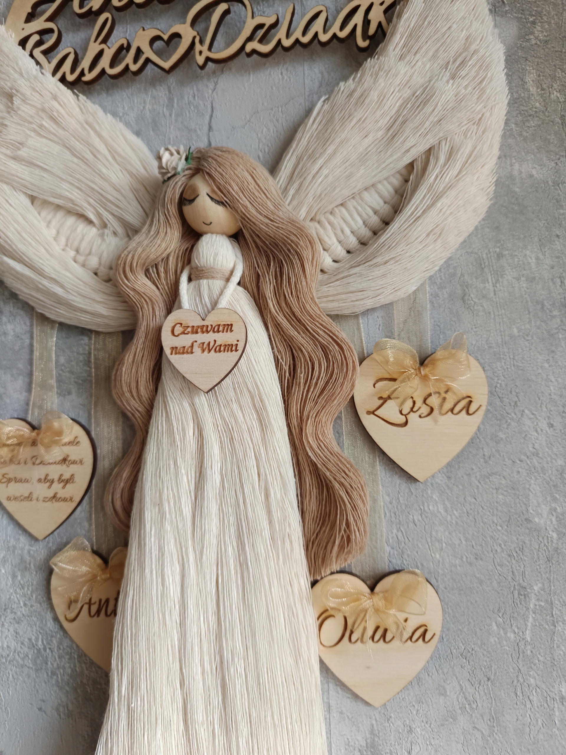 Dzień babci i dziadka Anioł Stróż Makrama upominek prezent