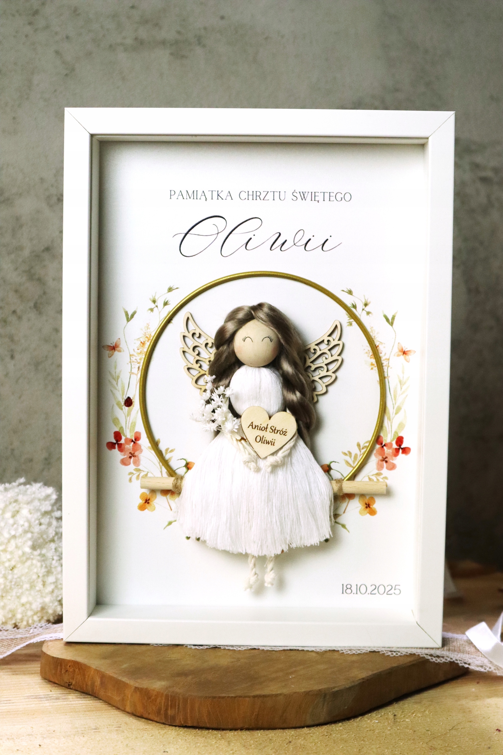 Унікальна рамка з ангелом із макраме ручної роботи стане чудовим подарунком до Святого Хрещення та не тільки!