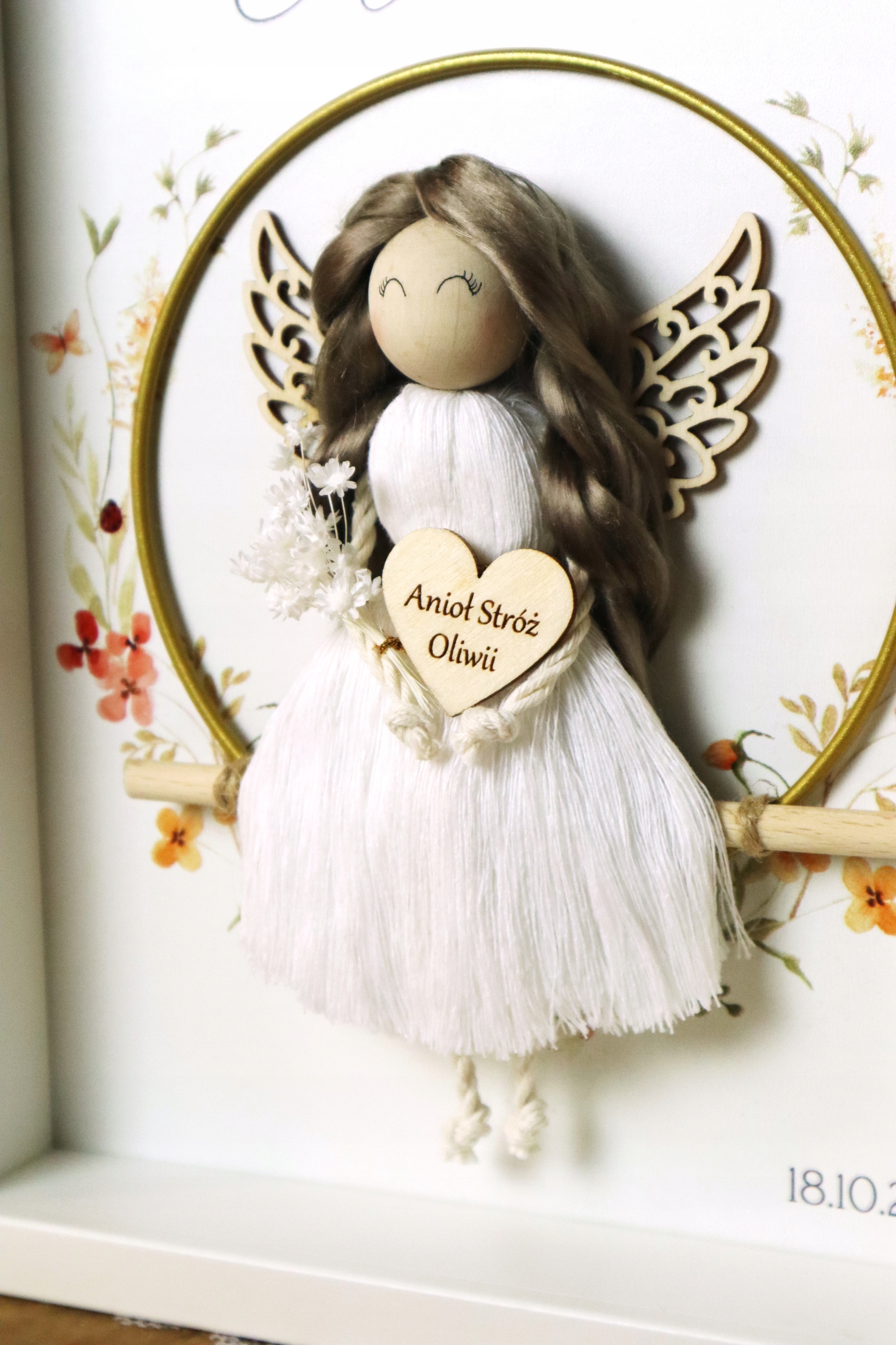 АНГЕЛ ОХРАНИТЕЛЬ З МАКРАМЕ В РАМЦІ, ПОДАРУНОК НА ХРЕЩЕННЯ, СУВЕНІР НА ХРЕЩЕННЯ