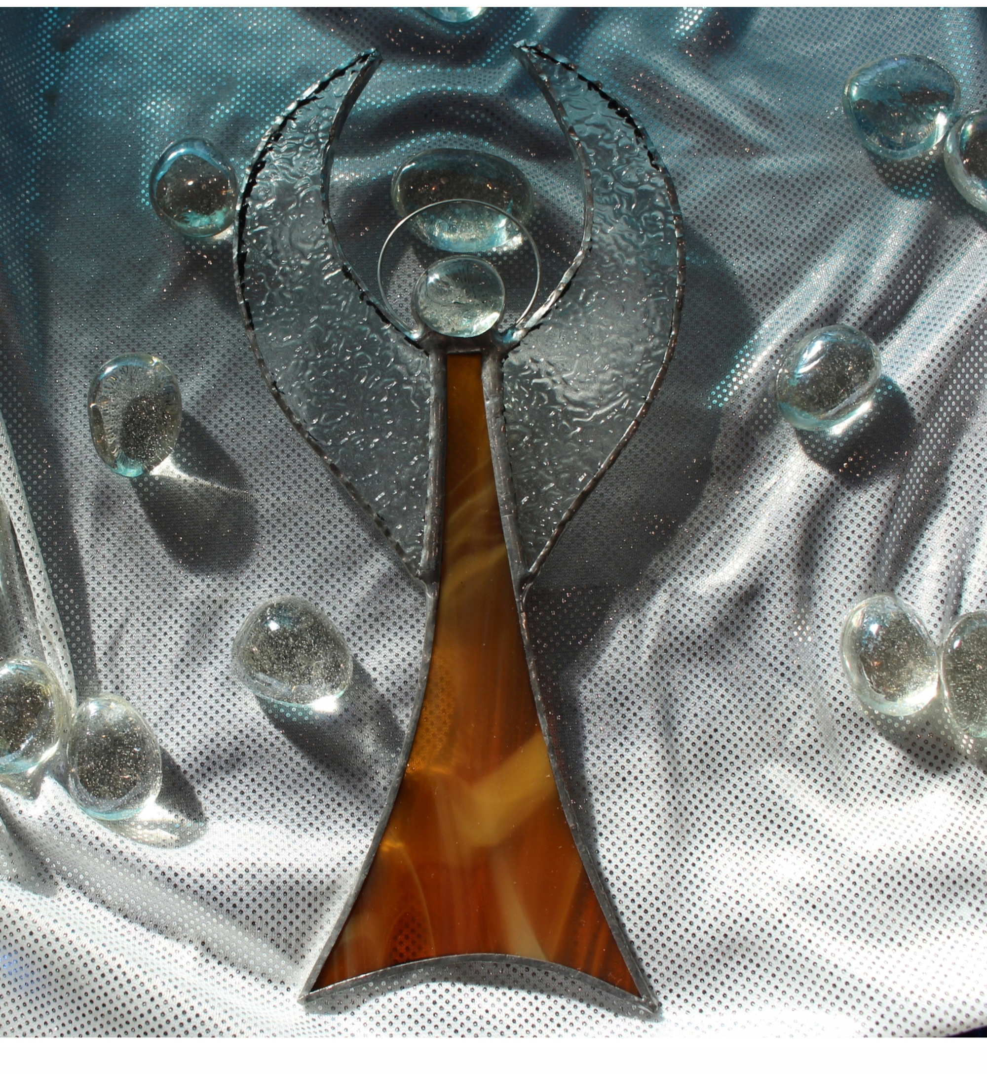 Скло вирізане вручну та з’єднане міддю та оловом. Крильця виготовлені з безбарвного рифленого скла, а сукня з масового кольорового скла, яке не фарбується. Особлива форма та колір скла означає, що не існує двох однакових частин.