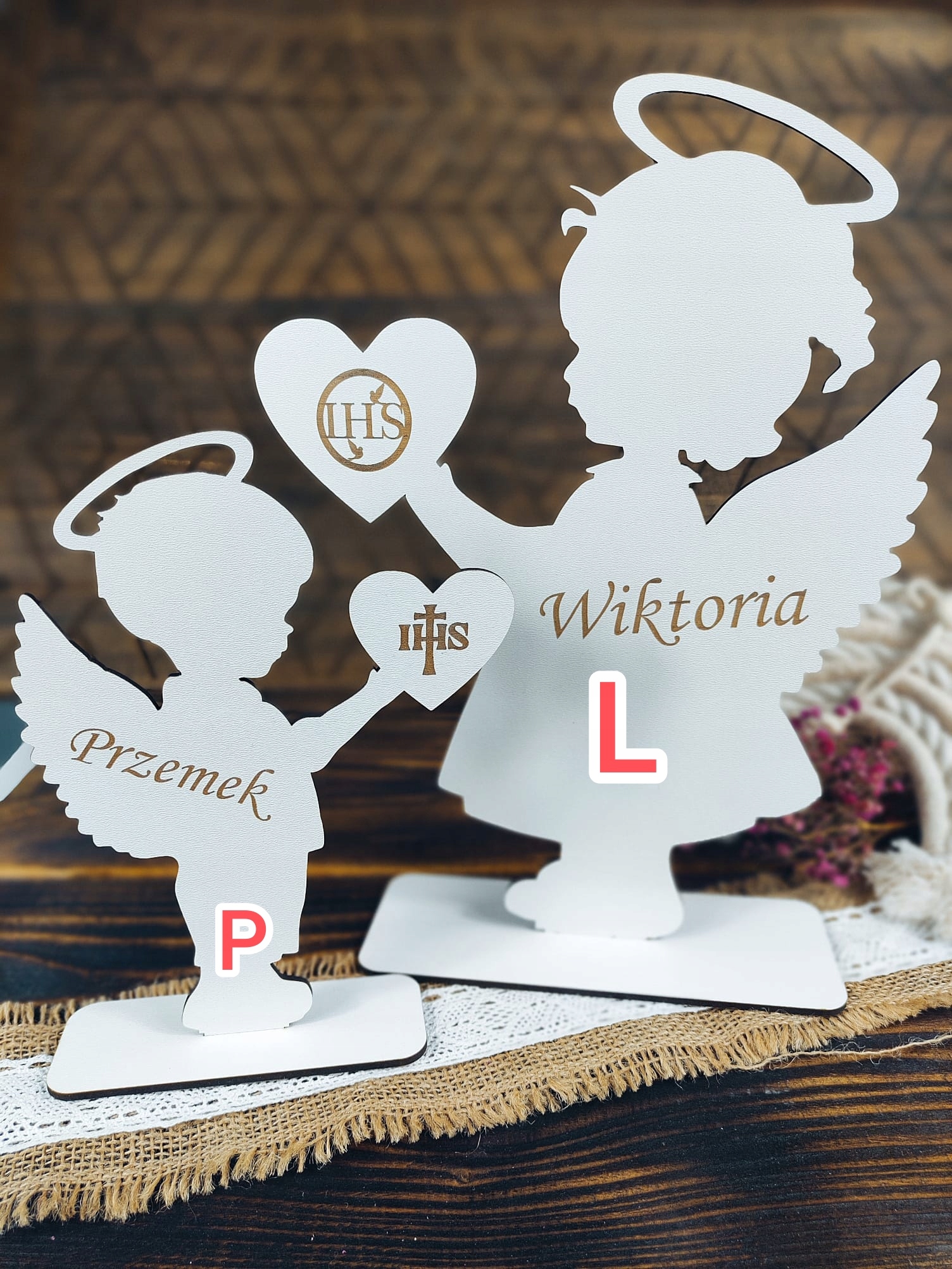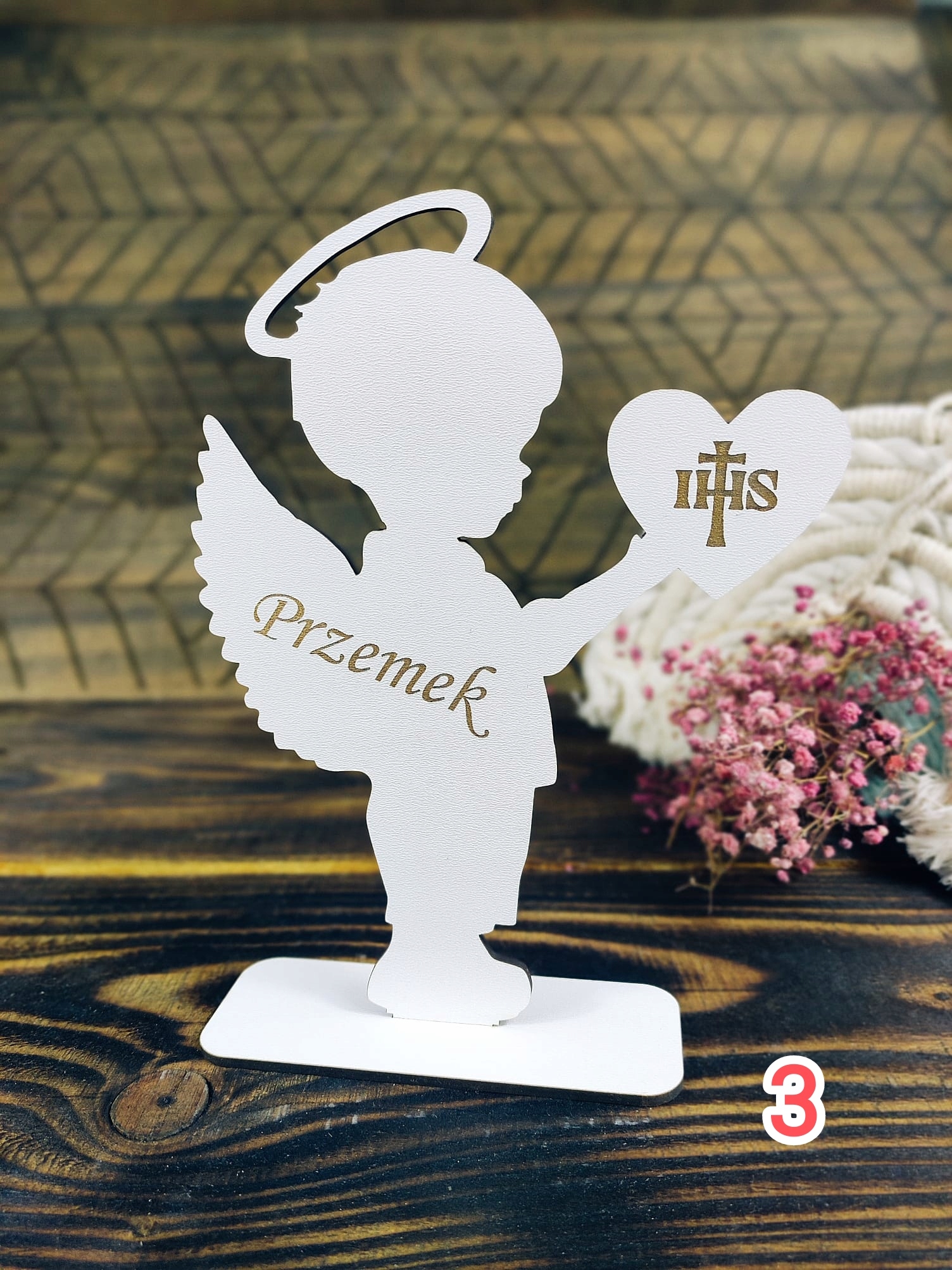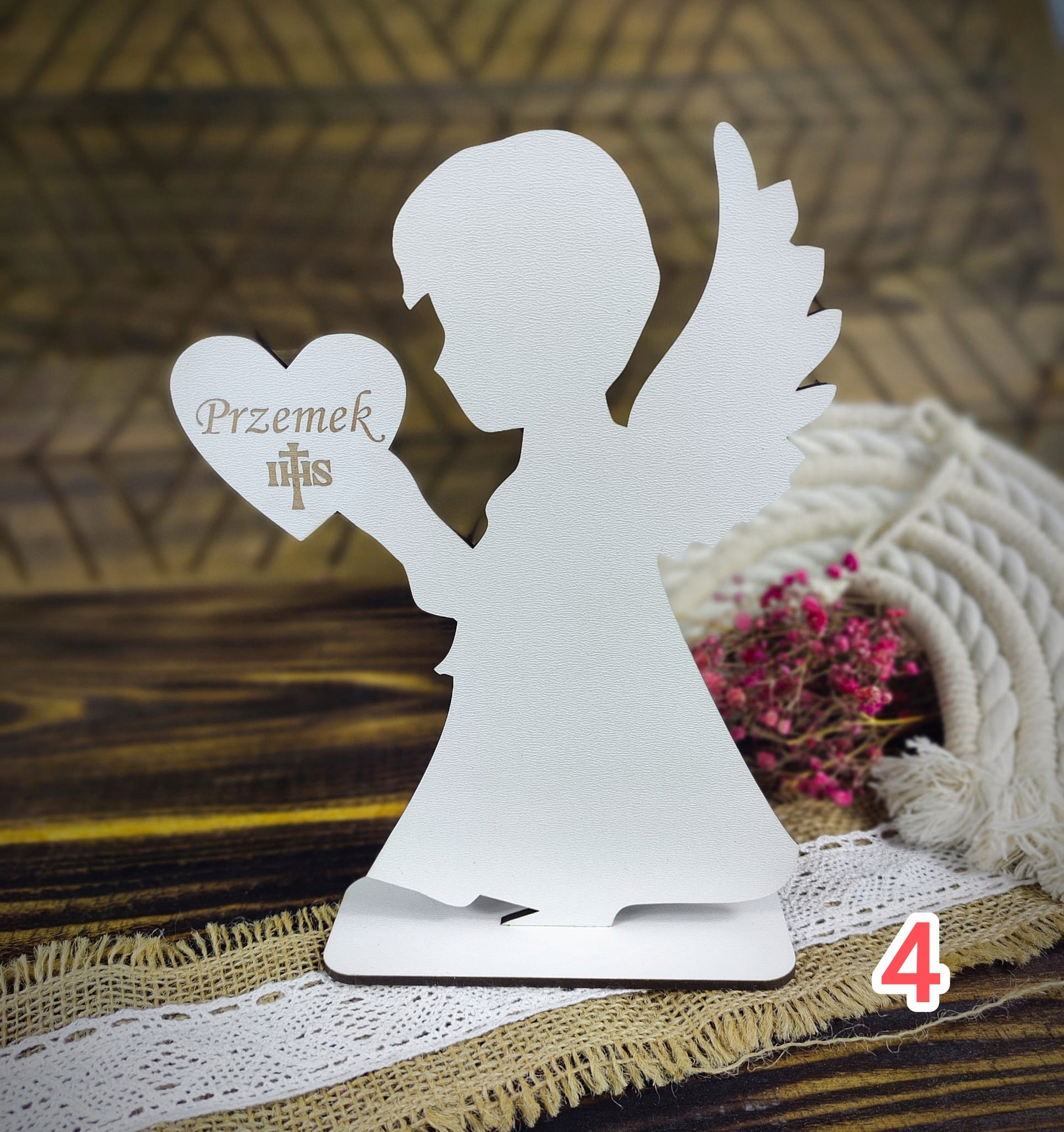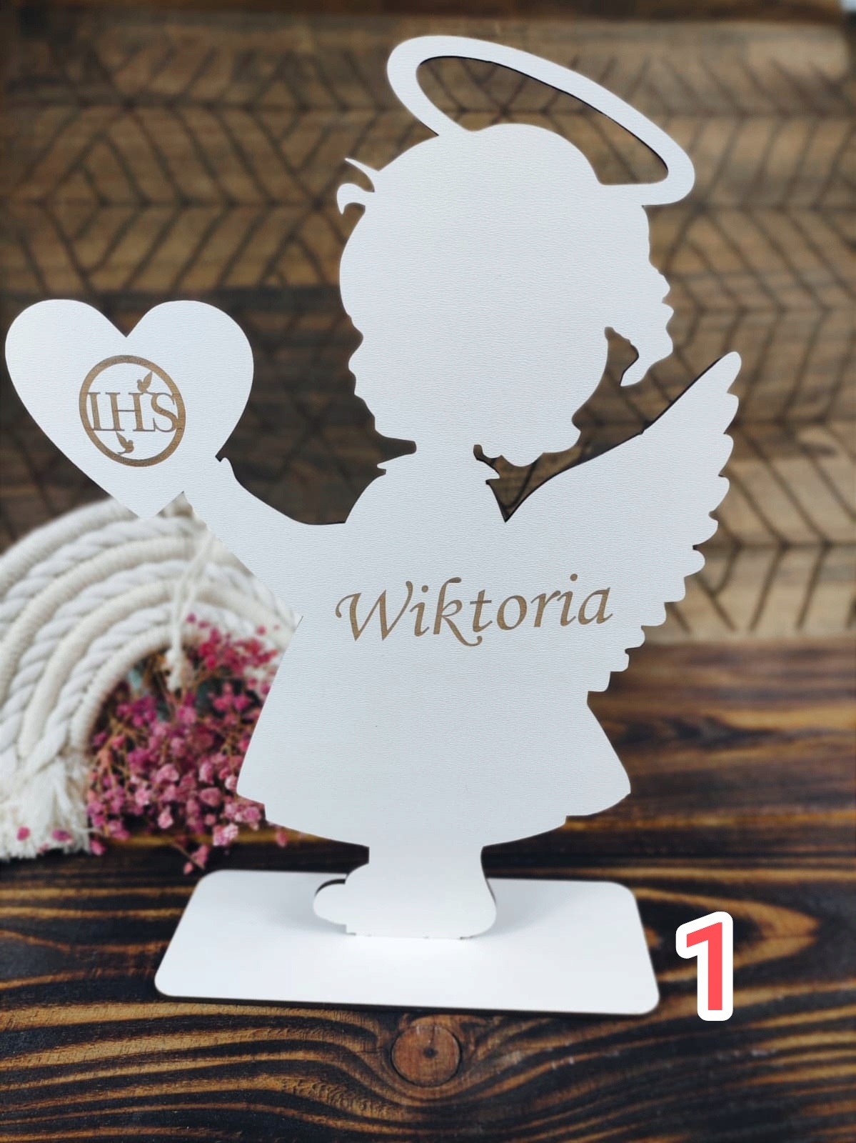 сувенір першого святого причастя - персоналізована фігурка ангела з серцем.