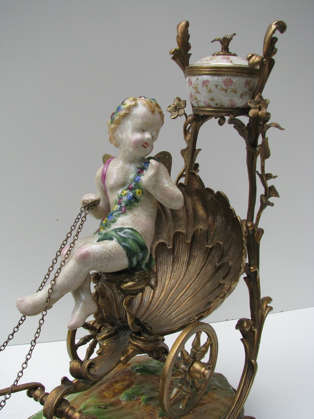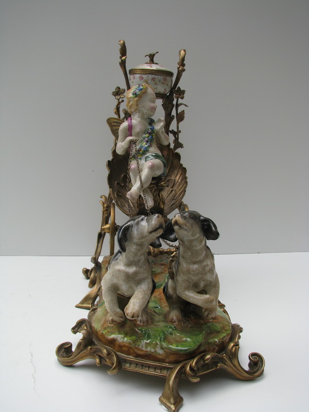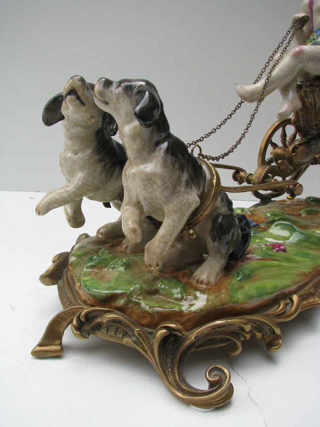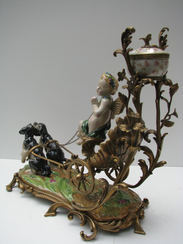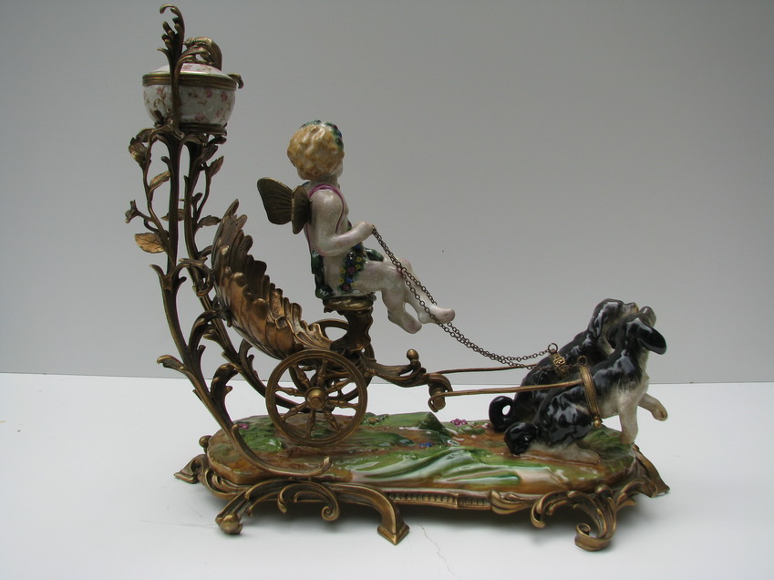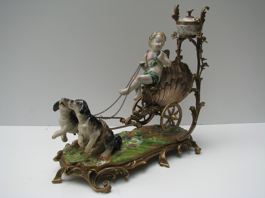 Привіт, сьогодні я хотів би запропонувати вам музейну порцелянову фігурку з бронзовою фурнітурою, на якій зображено ангела та собак.