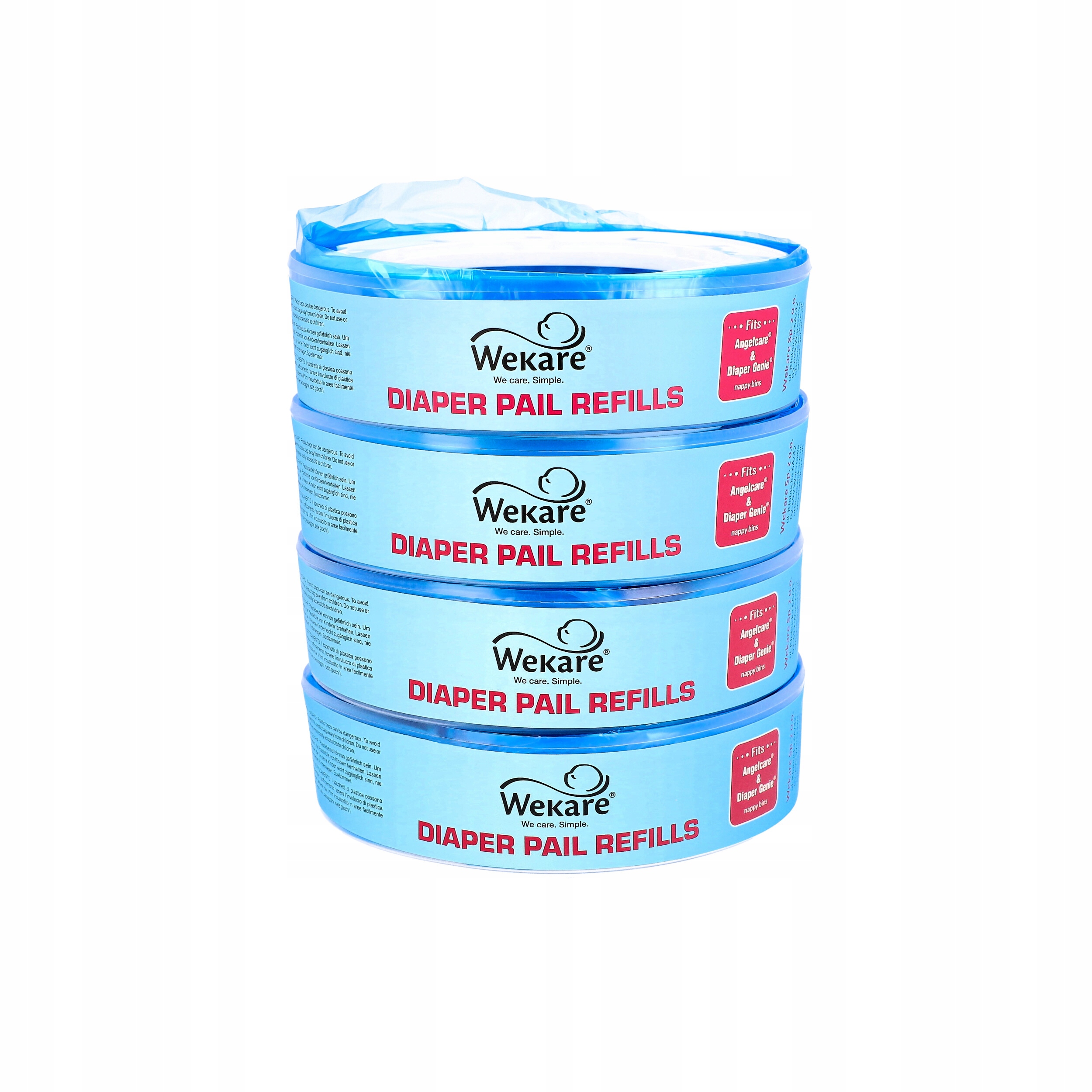 Картриджі Wekare мають ту саму систему встановлення, що й картриджі Angelcare – вони поміщаються в кошик і однаково прості у використанні.