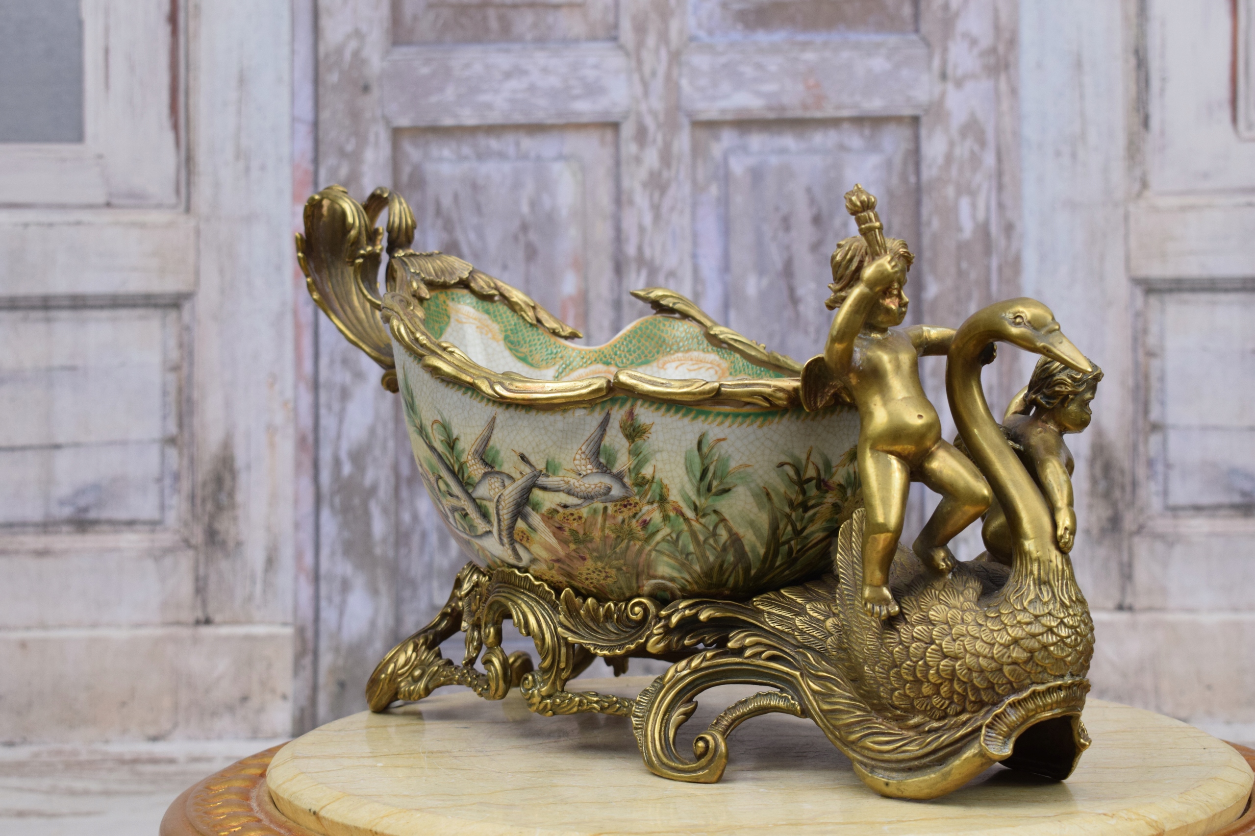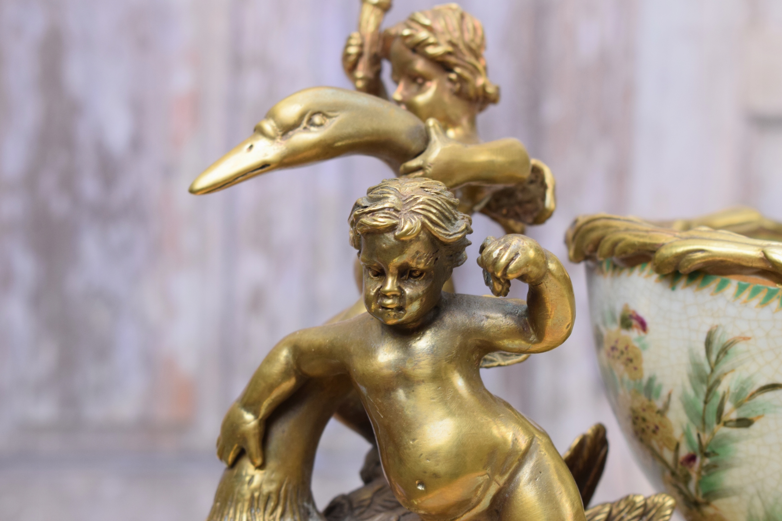 Ангели на лебеді ПАТЕРА - фарфор + бронза