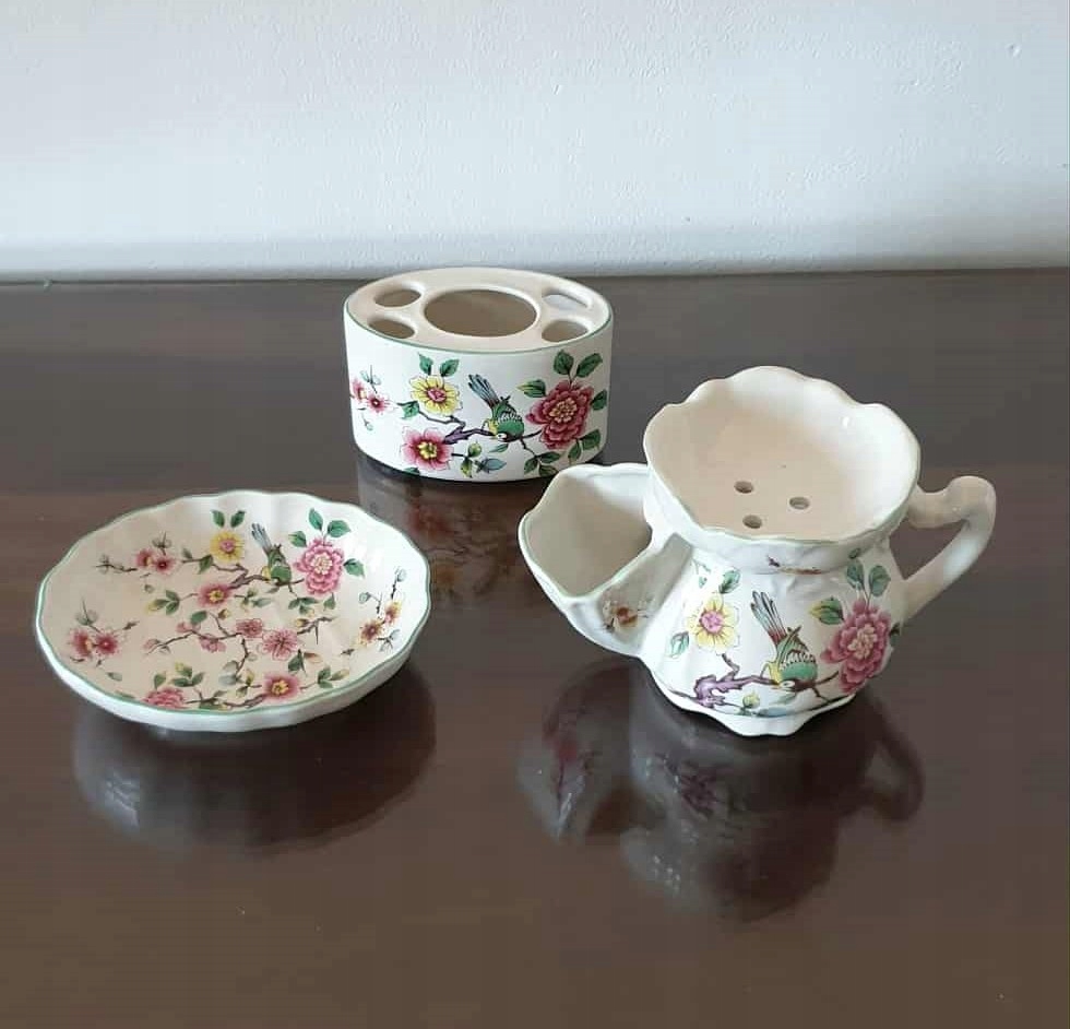 Angielski zestaw toaletowy Crown Devon „Charmon Rose” – vintage, porcelana