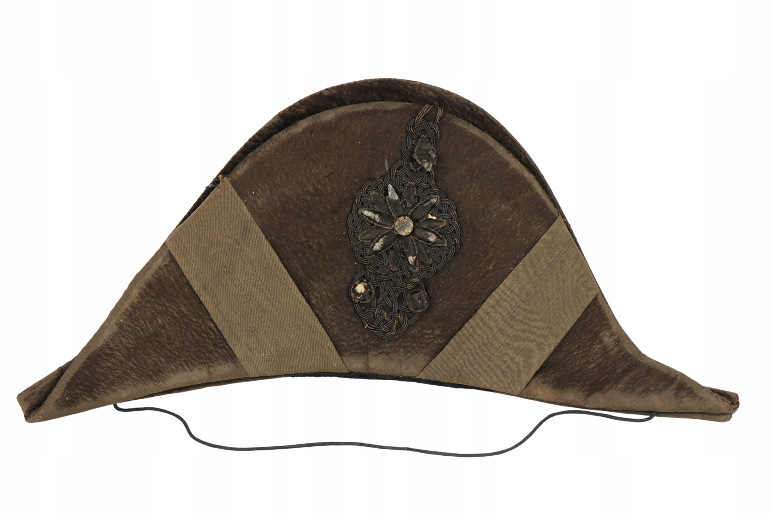 Цікавий військовий капелюх англійської чи американської бікону - це, швидше за все, офіцер куртки. Рука -Севна шапка, виготовлена з велюрового коричневого матеріалу.