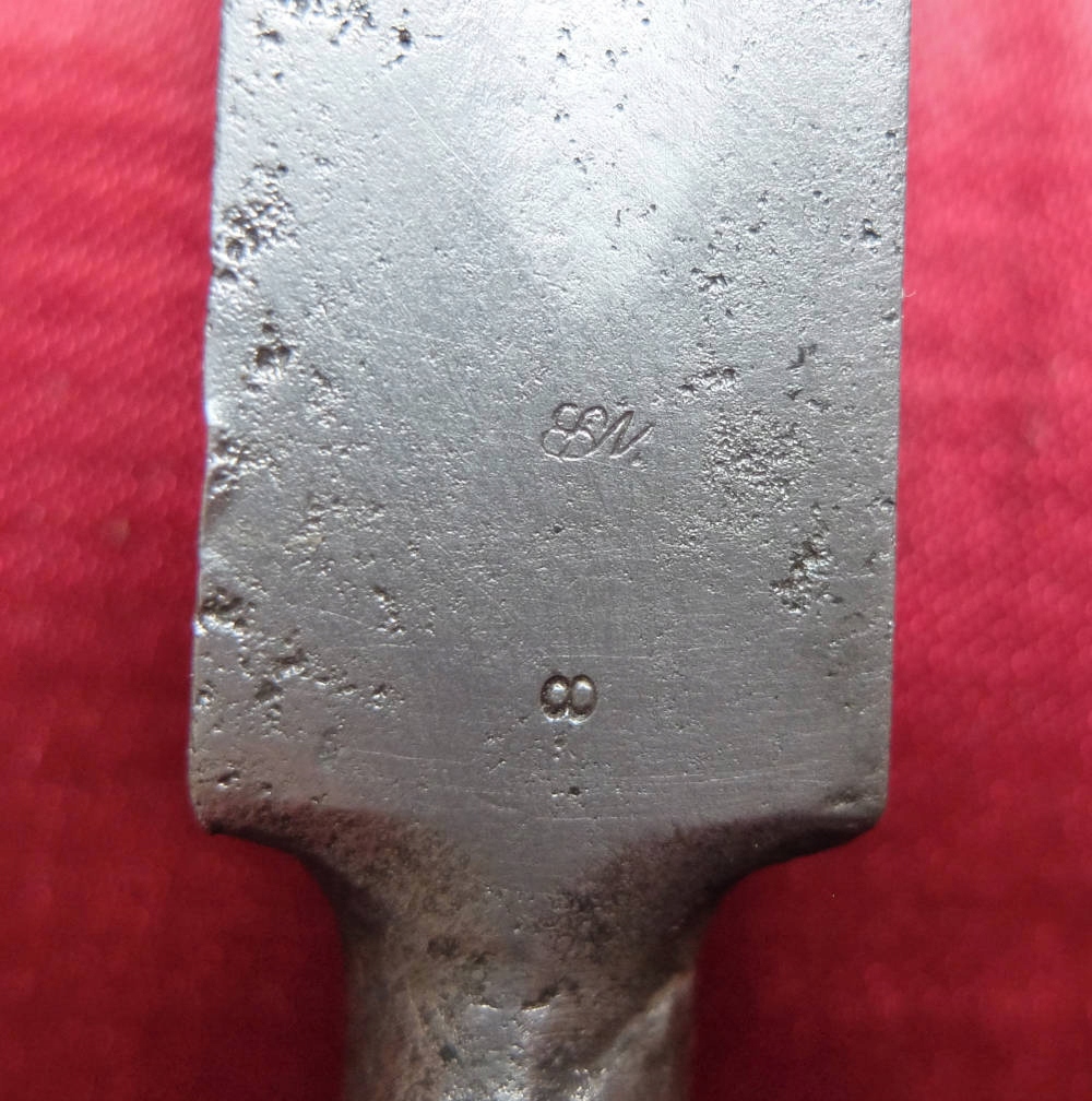 Товар, яка видна на фото, добре збереглася. Незаточений і незаточений. На краю леза видно невеликі підписи. Відсутнє кільце на втулці.