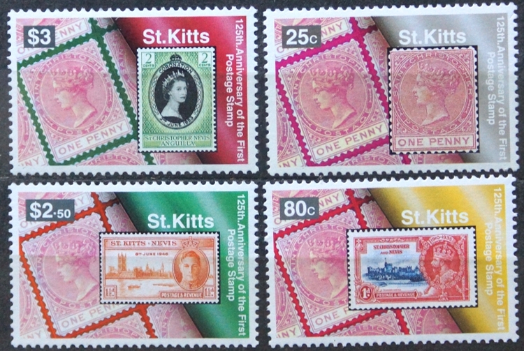 АНГЛІЯ - ST. KITTS - 1993 - 125-РІЧЧЯ ПЕРШОГО ШТАМПУ ST. KITTS