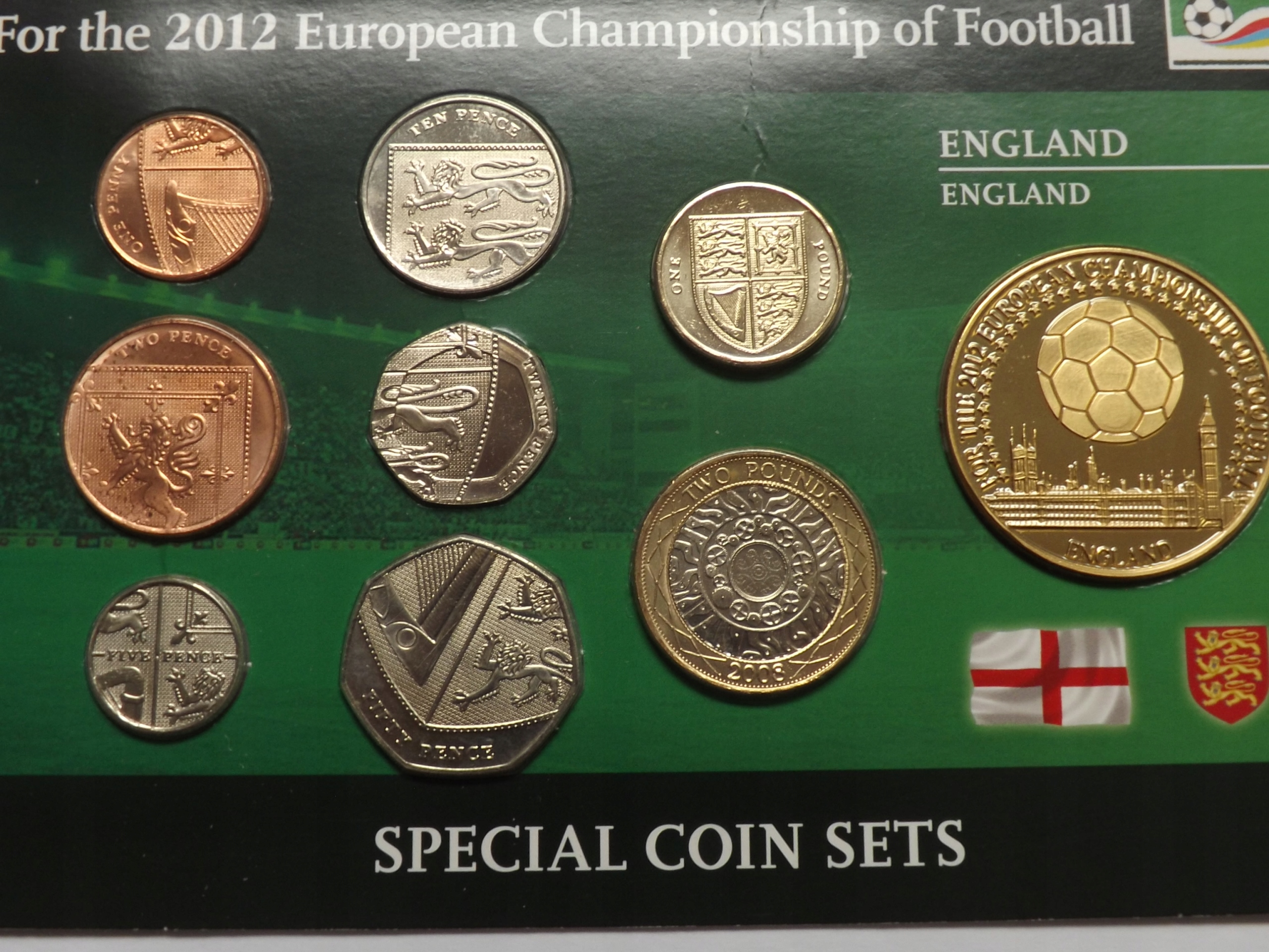 Англія Набір монет 2008-2010 *ME ПОЛЬЩА-УКРАЇНА 2012* + МЕДАЛЬ 40 мм, 9 х UNC