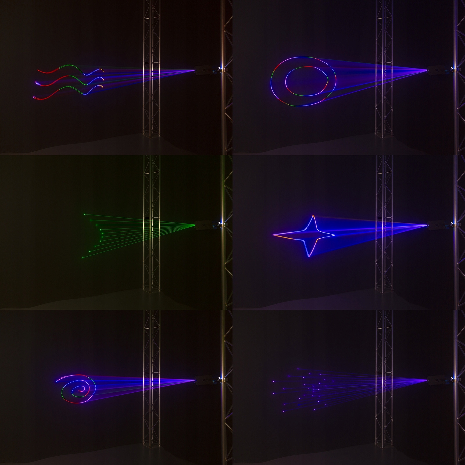 Для багатоколірного лазерного шоу Pollux 1200 використовує 3 лазерні модулі, а саме червоний, зелений і синій (RGB). Змішуючи кольори цих лазерів, Pollux також може створювати інші кольори, наприклад жовтий або фіолетовий. Загалом Pollux здатний створювати 7 кольорів для найдивовижніших і яскравих лазерних шоу.