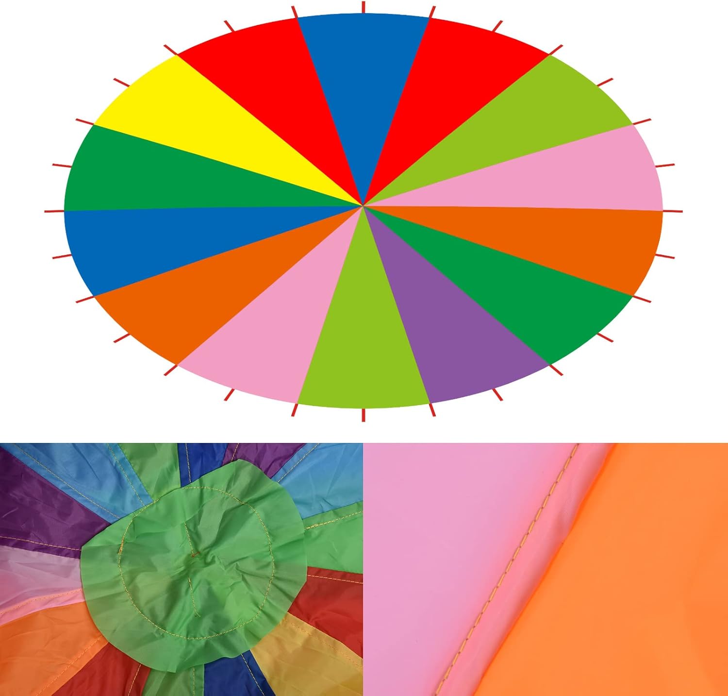 - Мультикольований: Стиль веселки, цей парашут для гри виглядає дуже красиво та привабливо. Це допомагає практикувати м’язи передпліччя та пальців дитини під час кумедних ігор та ігор.