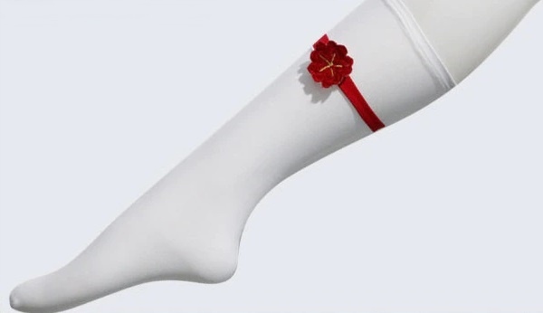 - Білі довгі шкарпетки з шпильками ріпа з червоними стрічками з квіткою,