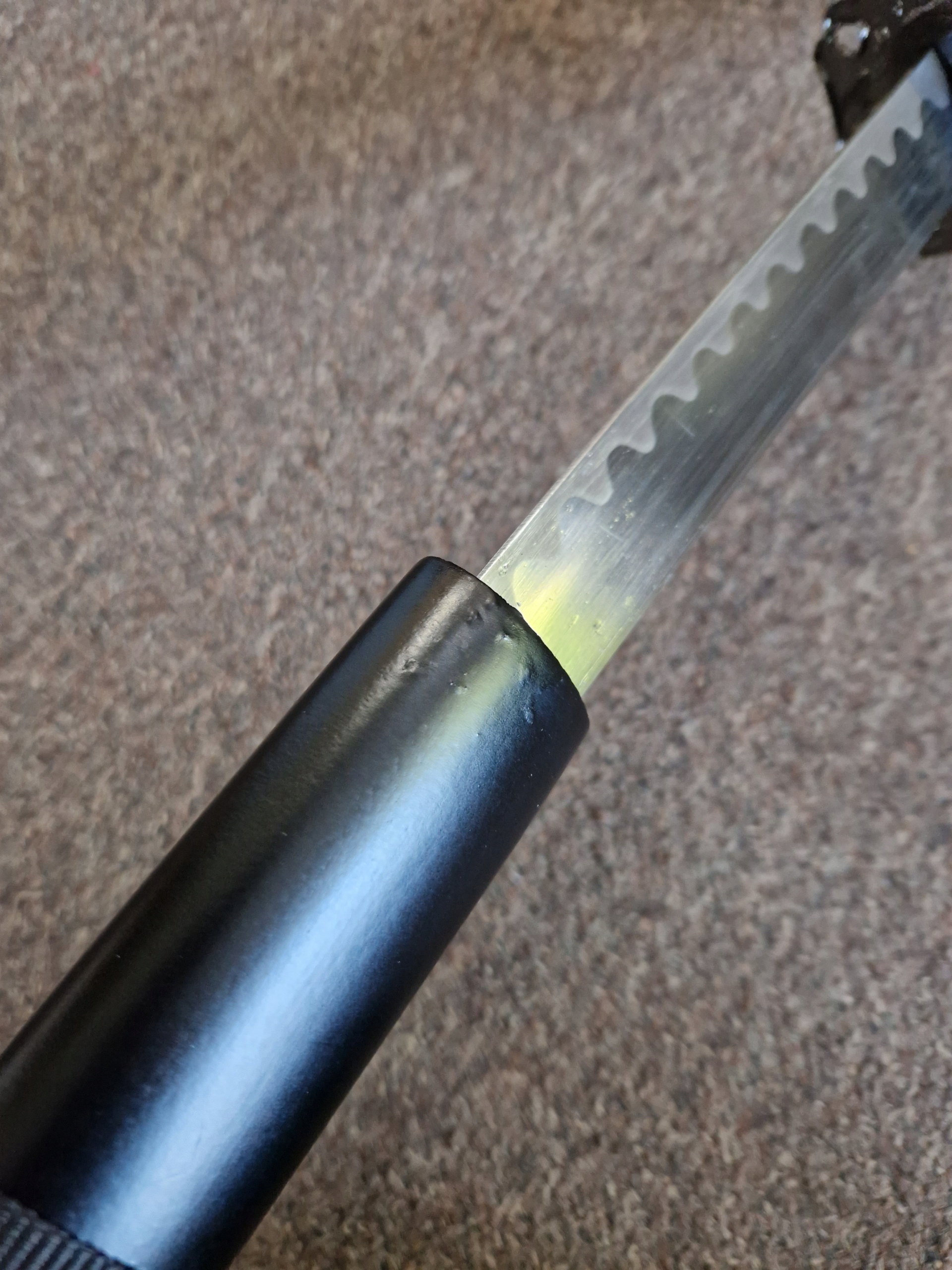 НОЖНИ/ САЯ: тверда деревина – лакована бавовняна тасьма (сагео) – ручне гравіювання з мотивом дракона