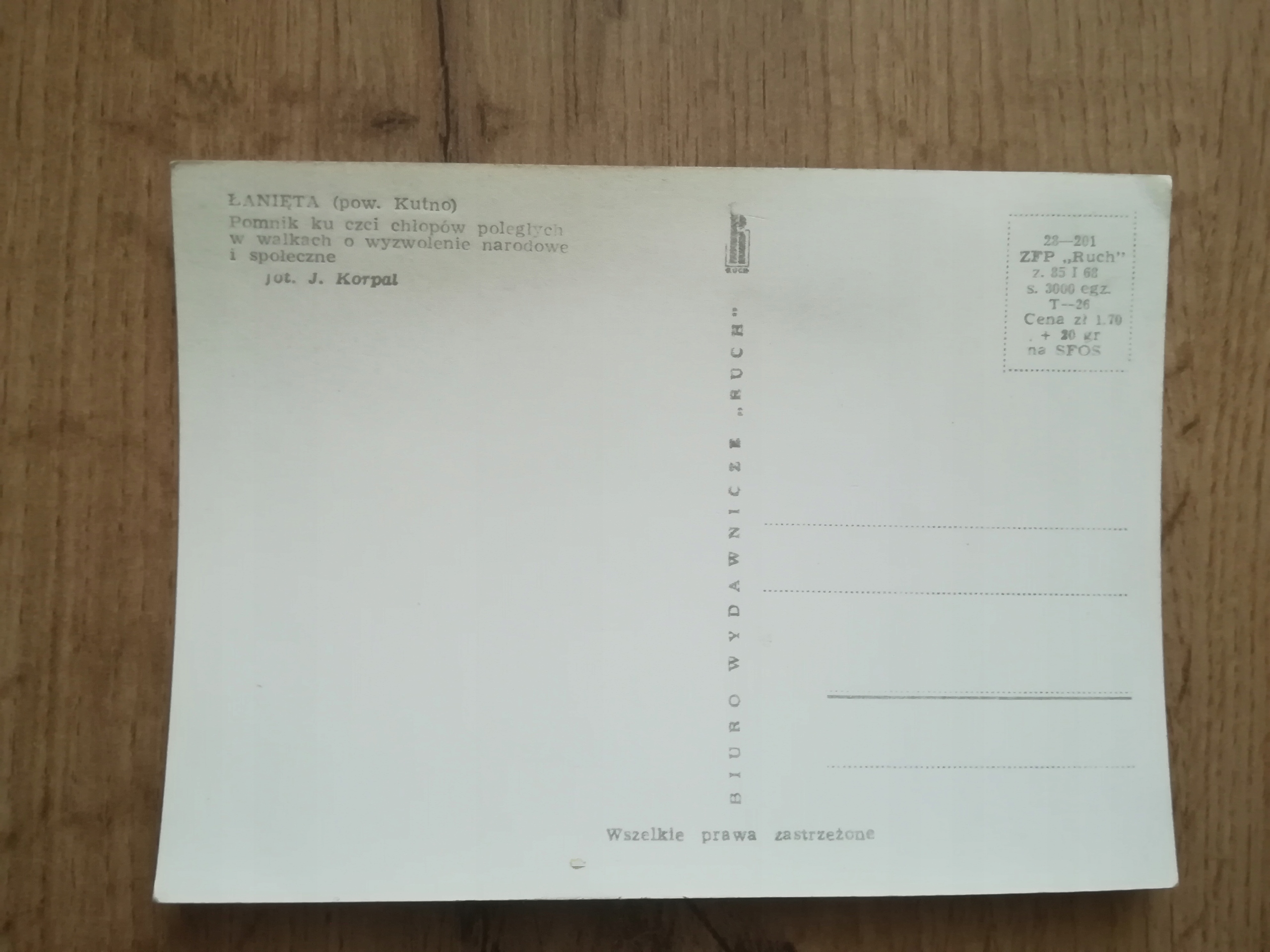 Приобретая «Łanięta - Kutno Poviat - открытка - памятник - 1970» данный товар из каталога «Центральная Польша» вы можете быть уверены, что после оформления заказа, доставки в Украину, вы получите именно то, что заказывали, в оговоренные сроки и европейского качества.
