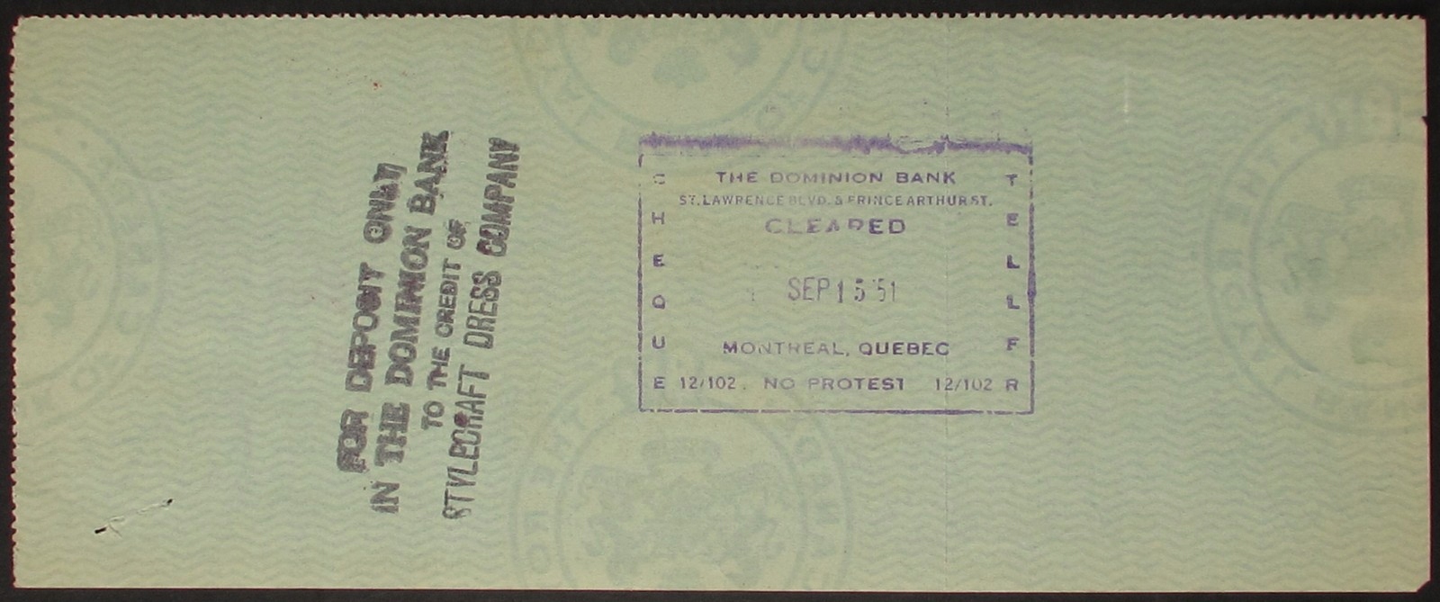 ЧЕК КОРОЛІВСЬКОГО БАНКУ КАНАДИ КАНАДА МОНРЕАЛЬ 1951