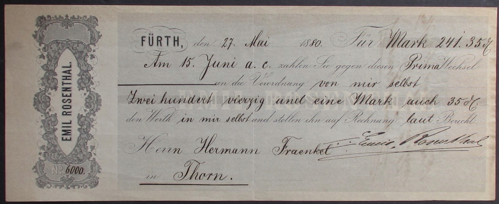 Ферт Еміль Розенталь Торн Торуні векселя 1880 р.