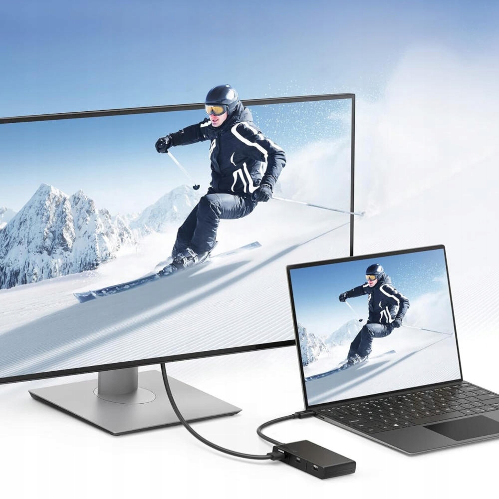 За допомогою концентратора Anker 332 можна легко перетворити один із портів USB-C вашого ноутбука на багато нових (пристрій «підключи та працюй»): порт HDMI 4K, Порт USB -C 5 Гбіт/с, 2 порти USB-A та порт PD-IN потужністю 100 Вт.