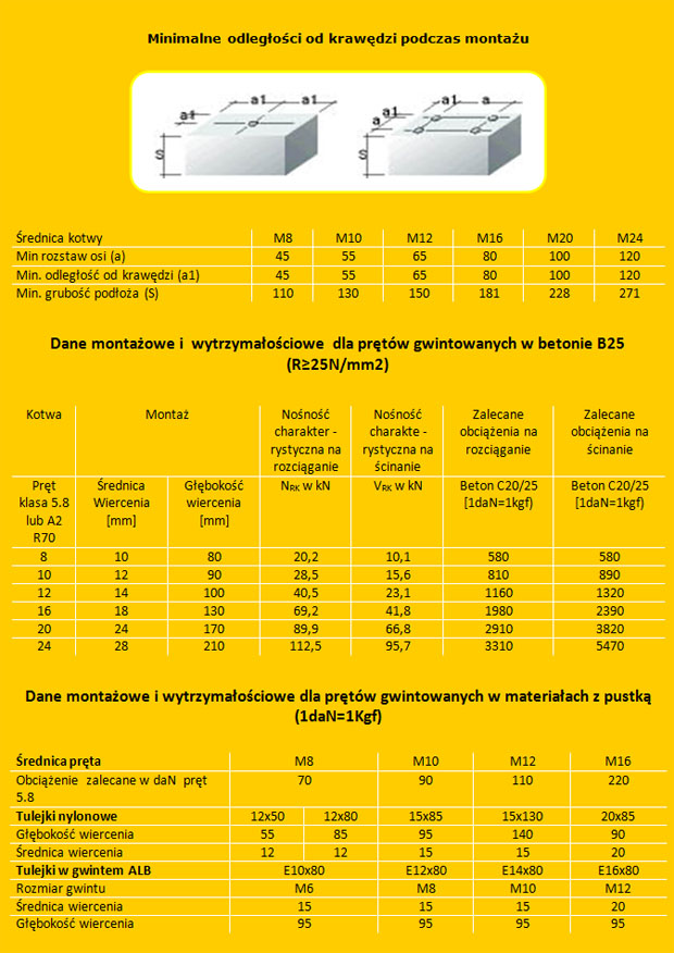 Європейський технічний сертифікат ETA 12/0543 - ETAG 029 для встановлення в муровану основу, ETA 10 ETA-15/0008 монтаж у бетон без тріщин варіант 7 для різьбових шпильок від M8 - M10 - M12 до M16