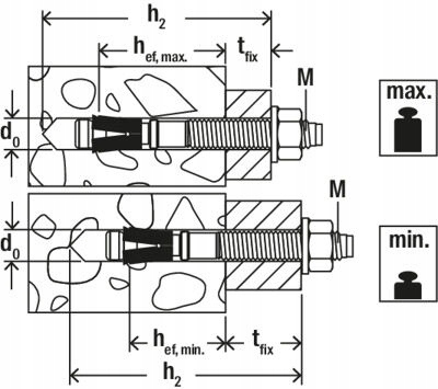 - Один анкер - дві глибини анкерування: зменшена глибина анкерування економить час і витрати на буріння отвору.