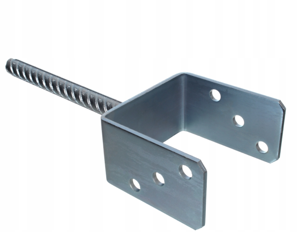 Анкер сталевий з ребристим стержнем для закладення, використовується для кріплення колон. Виготовлений із сталевого листа та ребристої планки, потім електролітично оцинкований у білому пасивуванні.