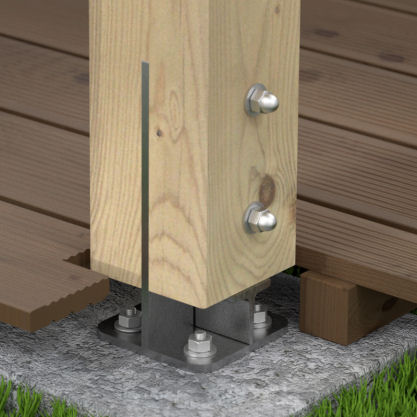 Основа, яка використовується для з’єднання дерев’яних колон із бетоном. Т-подібний стрижень, розміщений у нижній частині основи, дозволяє спиратися на неї балці, що покращує стійкість конструкції та гарантує додаткове розширення колони від землі.