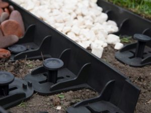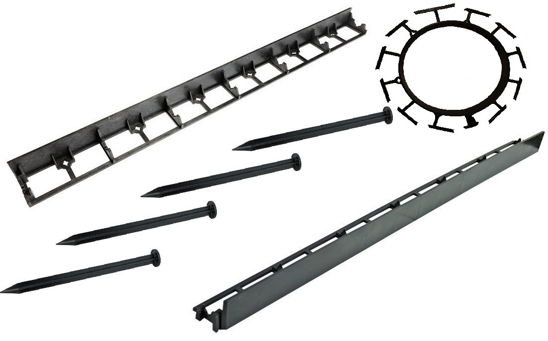 використовуються для кріплення бордюрів і країв газону до землі. Шпильки універсальні і підходять для багатьох типів країв газону. Виготовлений з дуже міцного матеріалу, стійкого до ультрафіолетового випромінювання. Діапазон температур для використання штифтів становить від -35°C до 80°C.