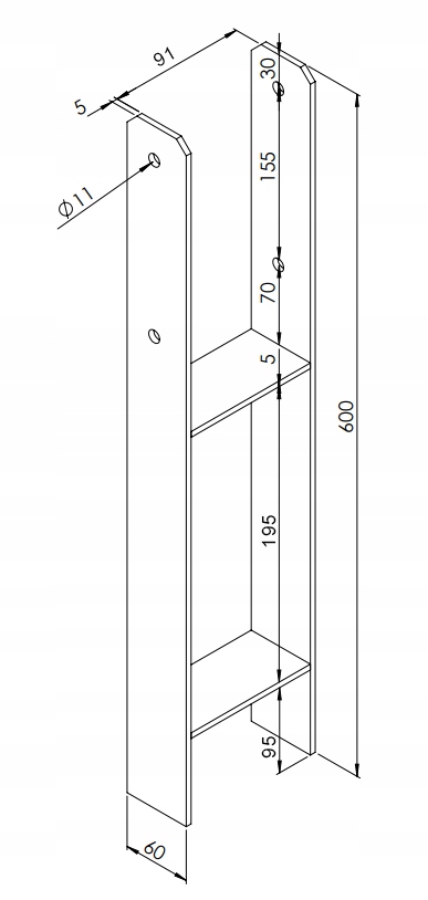 АНКЕРНА ОСНОВА для СТРУБІВ для БЕТОННОЇ КОНСТРУКЦІЇ 90 х 600 мм