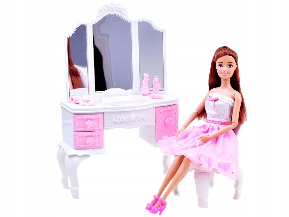 Чарівний туалетний столик з лялькою для ігор в салоні краси або перукарні принесе задоволення кожній дівчинці.