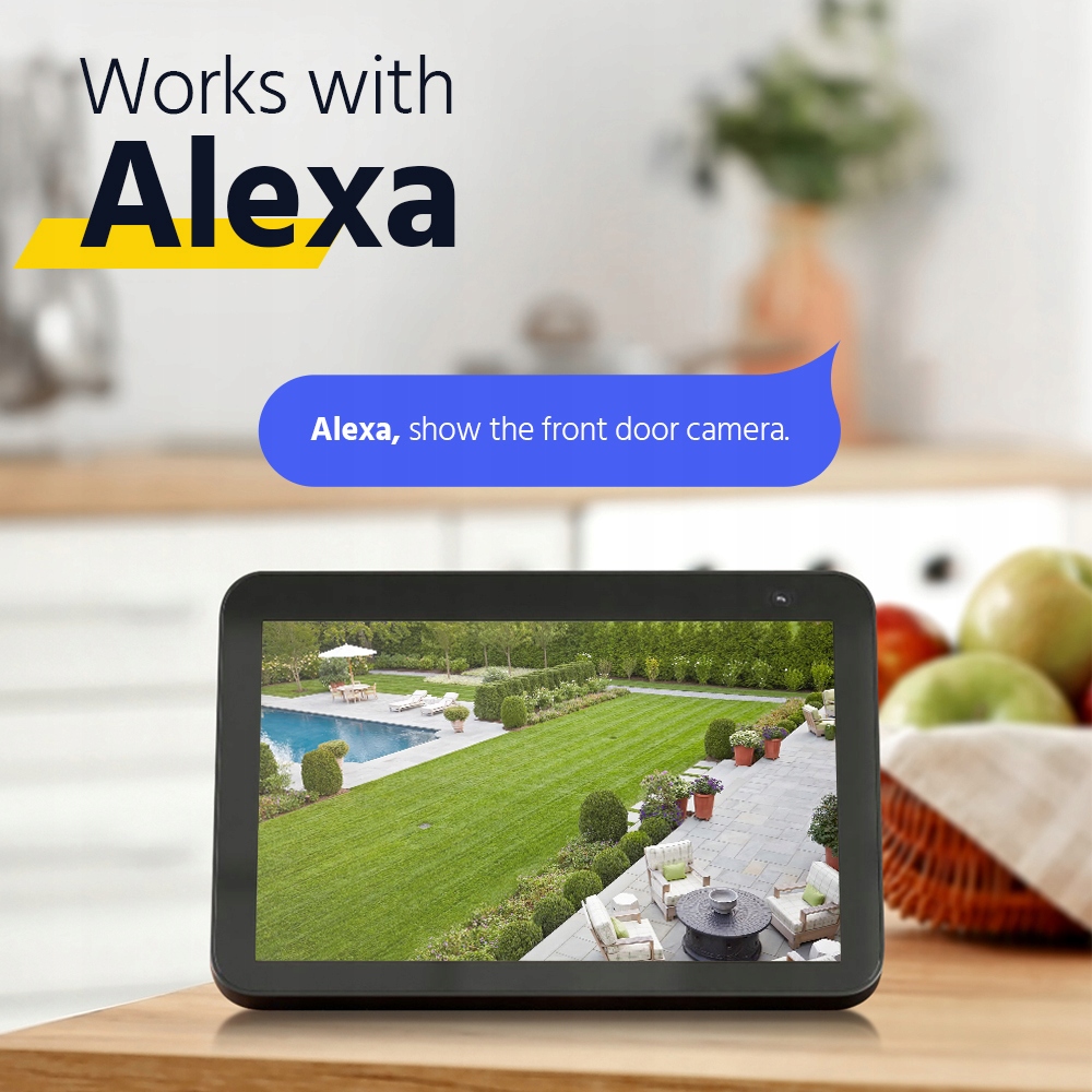 *Підключіть систему до свого пристрою Alexa для 100% гучної трансляції без використання смартфона. Просто скажіть «Alexa, покажи вхідні двері», щоб побачити, що відбувається за вашими дверима.