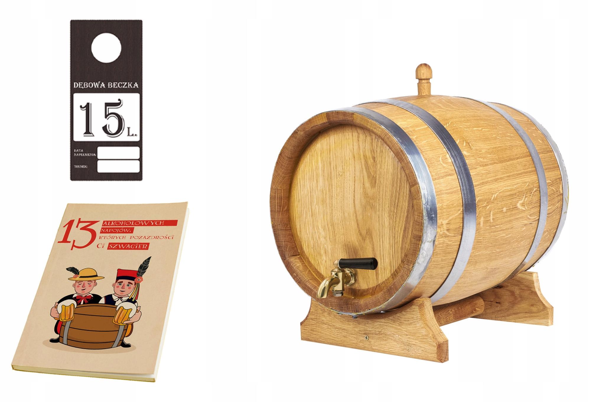 - Бочка має латунний кран, що дозволяє легко наливати напій.