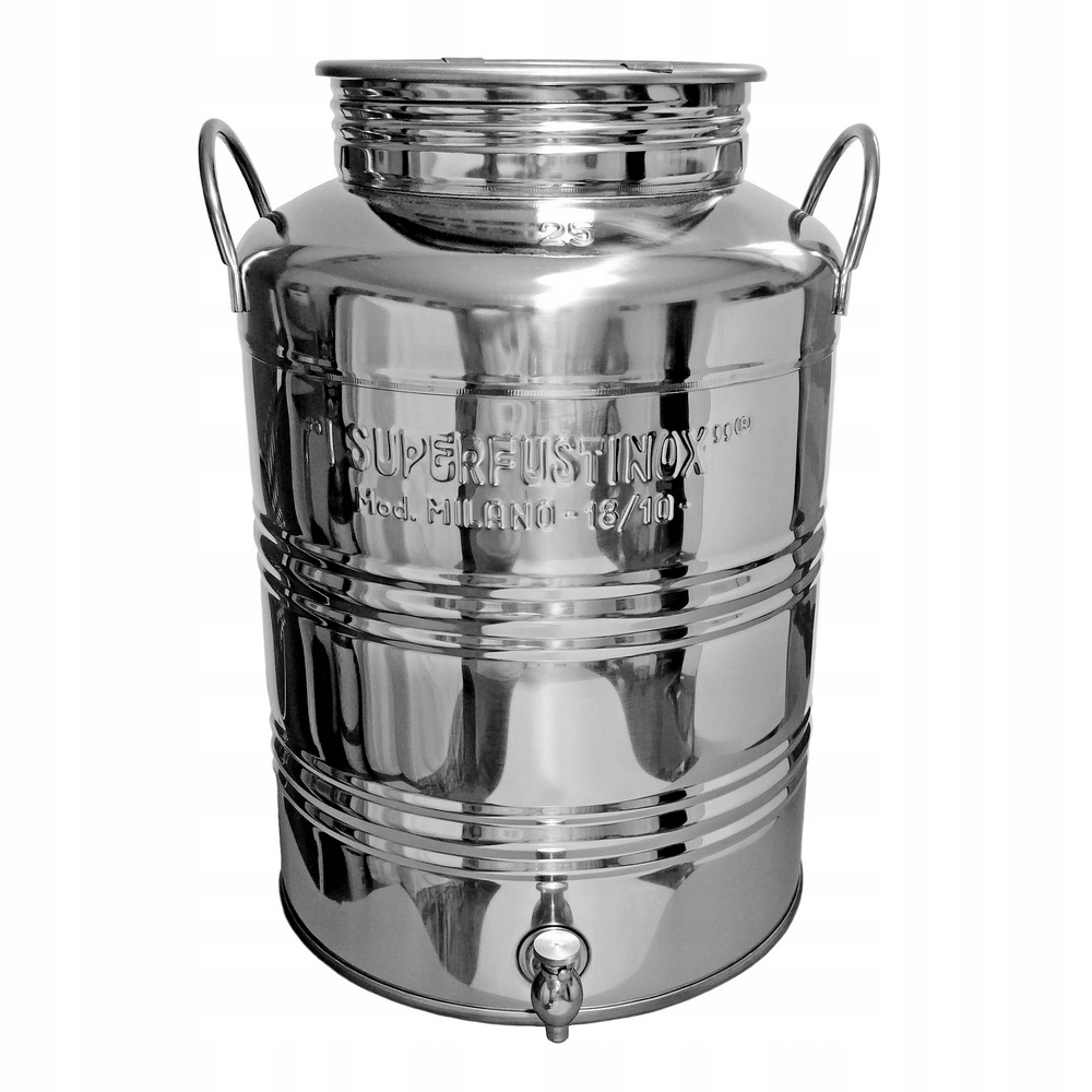 Високоякісна бочка виготовлена з міцної нержавіючої сталі та вміщує 25 літрів рідин або сипучих харчових продуктів.