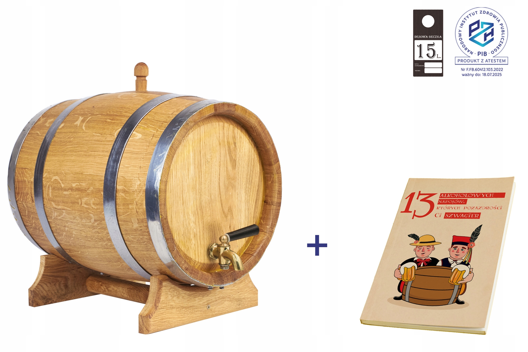 - При замовленні бочки ви також отримуєте пробку та дерев'яну підставку, завдяки чому виріб буде чудово виглядати як доповнення до вашого дому.