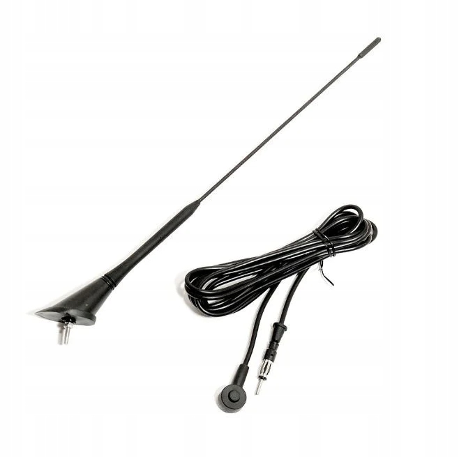 Універсальна дахова антена з кутом нахилу 52° призначена для прийому радіосигналу в автомобілі. Антену можна розмістити на передній або задній частині даху. Весь набір складається з антенної штанги, монтажної розетки та шнура живлення. Стрижень антени прикручується, тому його можна легко зняти, наприклад, при відвідуванні автомийки. Довжина стрижня 40 см. Довжина кабелю 330 см. Увага: антена не має підсилювача! Просвердліть отвір діаметром 5 мм у даху автомобіля. Зсередини автомобіля протягніть кабель від антени до автомагнітоли. Прокладіть кабель під оббивкою, щоб він не псував зовнішній вигляд салону, а потім підключіть його до автомагнітоли. У місці кріплення хвостовика антени забезпечте хороше окріплення кузова автомобіля (зніміть шар лаку на поверхні даху під гайкою кріплення). Ретельно загерметизуйте стик, щоб уникнути проникнення вологи. Якщо установка здається вам складною, рекомендуємо довірити її професійній автомайстерні.