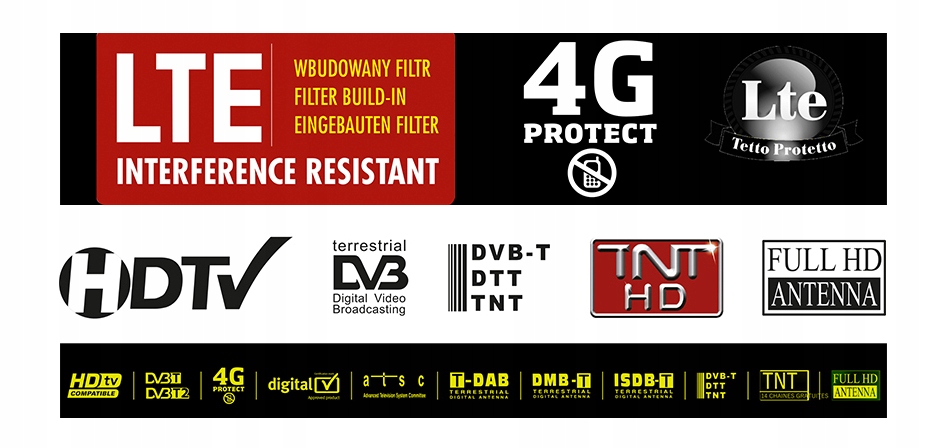 Спрямована антена оснащена LTE-фільтром, який дозволяє усунути перешкоди сигналу цифрового ефірного телебачення від передавачів або пристроїв, що використовують технологію LTE. Це забезпечується використовуваною системою SMT 4G PROTECT, яка ефективно захищає від перешкод.