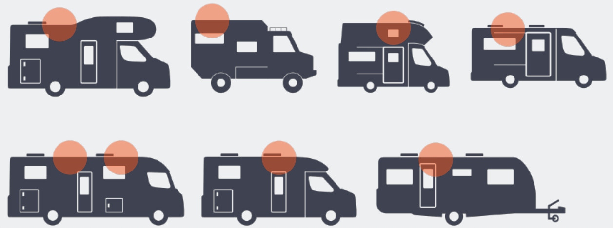 - Для будинків на колесах або караванів із градозахищеним дахом або дахом зі склопластику, напр. Б. Фендт, Кнаус, Хаймер