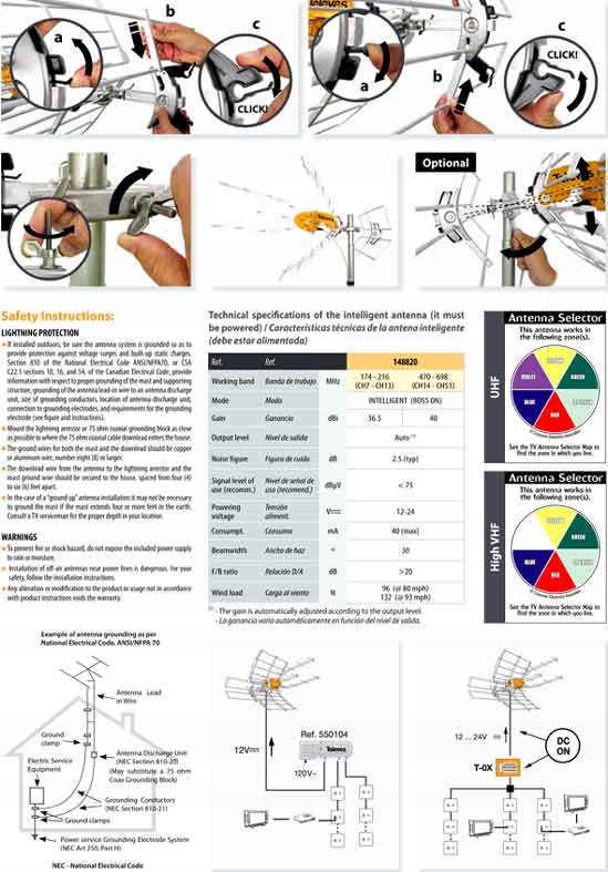 - Повністю екранована розподільна коробка захищає систему BOSS від шум імпульсивний. Заземлення захищає компоненти антени від електричних розрядів